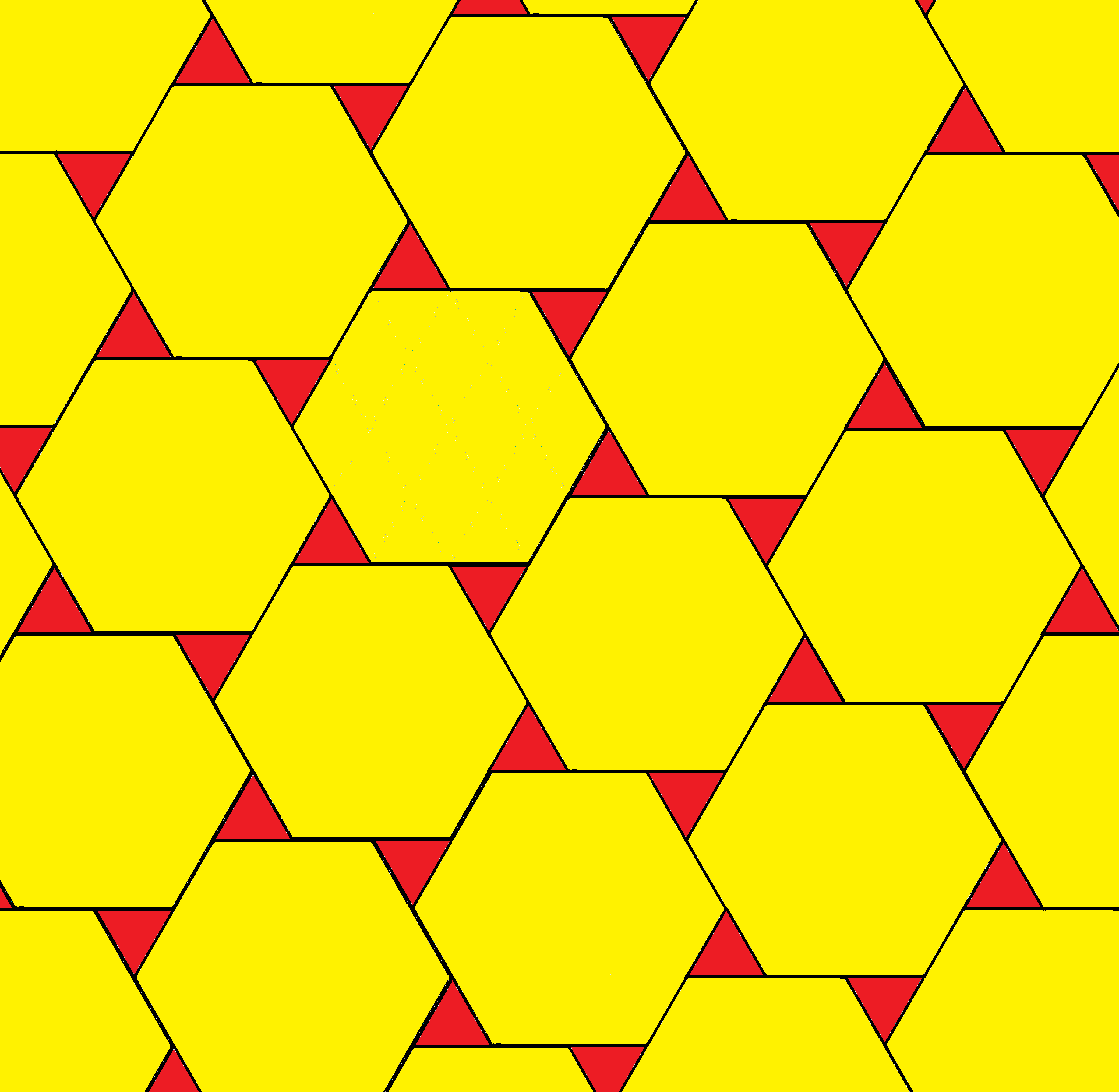 구성 다각형 | 정삼각형 (3.3.3.3.3.3) 정사각형 (4.4.4.4) 정육각형 (6.6.6) |