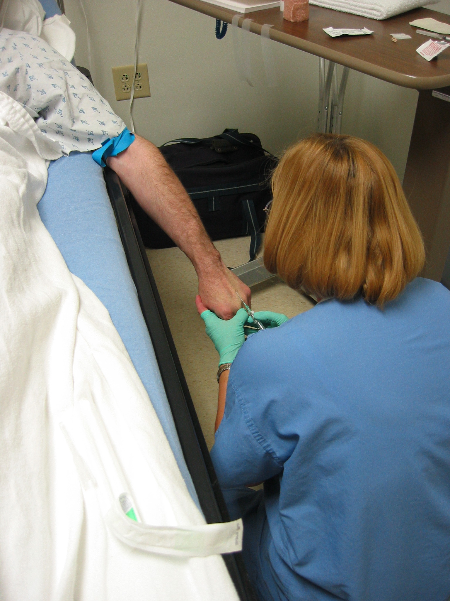 1970년대부터 1980년대에 걸쳐 플라스틱 카테터의 사용이 일상화되고, 그 삽입은 간호 직원에게 맡겨지는 경우가 많아졌다.[193] 일본에서는 1951년 후생성 의무국장 통지 이후 보건의료법상 간호사가 업무로 할 수 없었지만,[194] 2002년 행정 통지에 따라 "진료 보조"로서 간호사가 할 수 있는 것으로 명문화되었다.[194][195] 그 이전까지는 간호사가 정맥 주사를 하는 상황이 관행화되어 있었고, 실태와 법 해석이 동떨어진 상황이 오랫동안 지속되었다.[196]