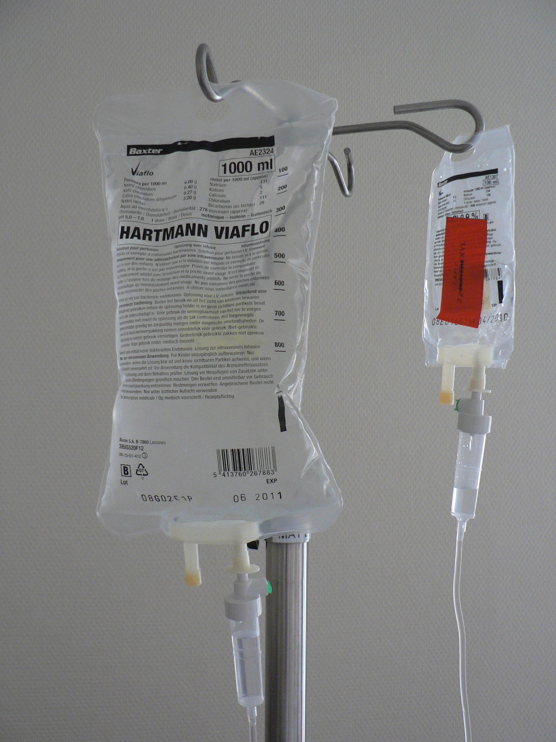 일부 정맥 주사 라인에는 Y-사이트라는 장치가 포함될 수 있다. 이는 주입 중인 주 라인을 통해 추가적인 보조 용액이나 약물을 투여할 수 있게 해주는 연결 부위이다. 이러한 방식으로 보조 용액을 투여하는 것을 '피기백'이라고 부르기도 한다.[40]5. 투여 방법