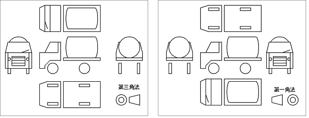 일본에서는 JIS에 따라 제3각법 사용이 규정되어 있다. 하지만 여러 외국에서는 전통적으로 제1각법을 사용해 왔으며 현재도 사용하는 나라들이 있다. 이 때문에 ISO 표준에서는 제1각법과 제3각법 두 가지 방식 모두를 인정하고 있다. 한국에서는 특히 조선 분야에서 제3각법이 많이 사용된다.