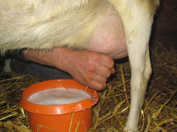 손 착유는 젖통의 젖꼭지를 마사지하고 아래로 당겨서 우유를 양동이에 짜내는 방식으로 수행된다.[1]
