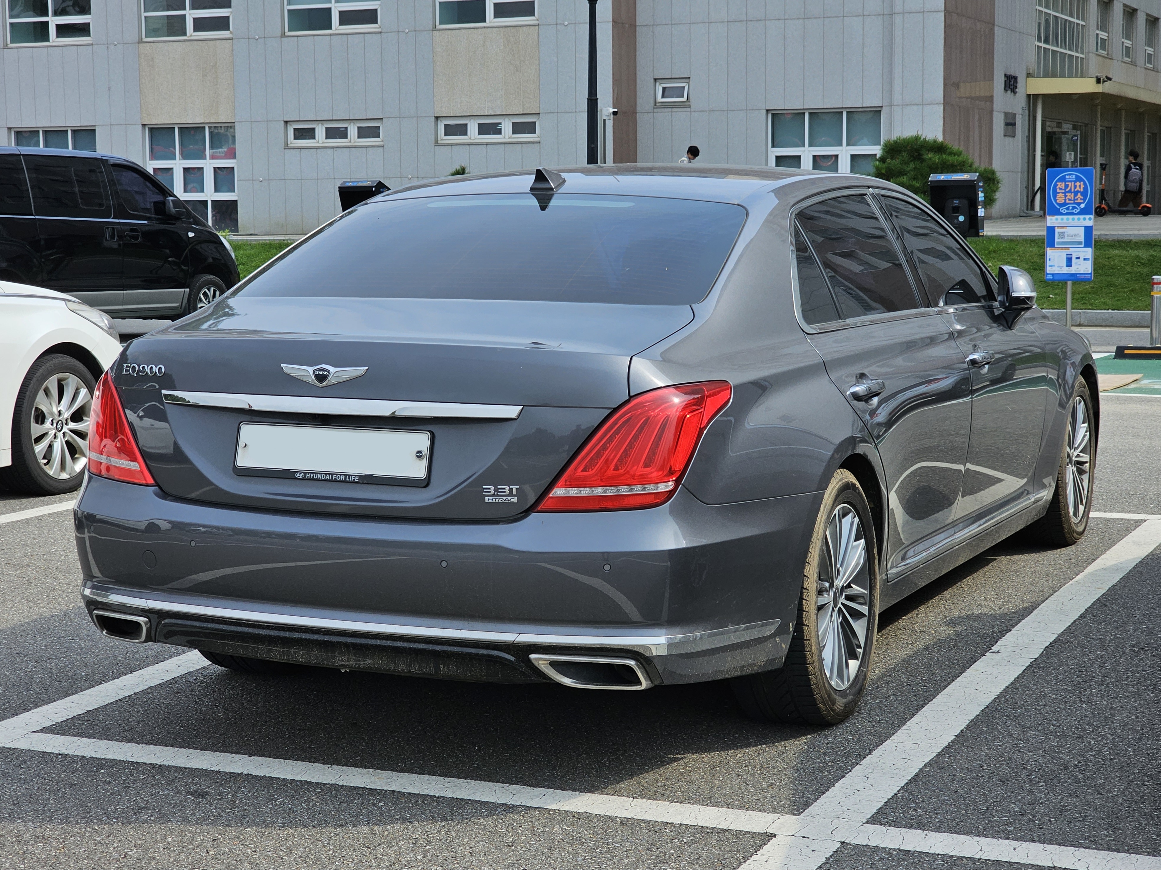 제네시스 G90의 1세대(HI, 2015년~2021년)는 현대 에쿠스의 계보를 잇는 모델로 정의되었다. 2015년 12월 9일에 EQ900이라는 이름으로 대한민국에 공식 출시되었으며, 사전 계약 대수가 1만 대를 넘어서는 등 큰 인기를 끌었다.[25]세계 최초로 운전자의 체형 정보를 입력하면 자동으로 시트 위치 등을 조정하는 스마트 자세 제어 시스템과 항공기 1등석 시트처럼 다양한 착좌 모드로 변형 가능한 퍼스트 클래스 VIP 시트 등 고급 편의 사양이 적용되었다. 현대자동차가 독자 개발한 전자식 4륜구동 시스템인 H 트랙(HTRAC)과 대한민국산 자동차 최초의 고속도로 주행 지원 시스템, 후측방 충돌 회피 지원 시스템 등 첨단 안전 기술도 탑재되었다.[24]