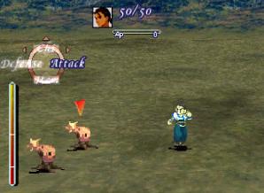《제노기어스》의 전투는 ''크로노 트리거'' 및 ''파이널 판타지'' 시리즈와 같은 게임에서 볼 수 있는 실시간 전투(ATB) 시스템의 변형이다.[5] 대부분의 적과의 조우는 랜덤이다. 전투가 시작되면 전투 인터페이스가 있는 별도의 화면으로 전환된다.