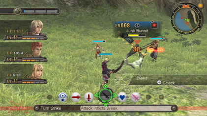 전투는 "파티 게이지", "어그로 링", "텐션" 과 같은 시스템에 영향을 받는다. 파티 게이지는 파티 멤버가 적에게 성공적으로 타격을 가하면 천천히 채워지며, 게이지를 채우면 추가 피해를 입히는 체인 어택을 수행할 수 있다.[15] 모든 파티 멤버는 주변에 "어그로 링"을 가지고 있으며, 캐릭터가 더 많은 행동을 수행할수록 커진다. 큰 어그로 링은 적이 해당 캐릭터에 집중하게 하여 적의 주의를 유인하고 돌리는 전략적 측면을 이끈다.[14] 각 캐릭터는 사기를 나타내는 "텐션" 게이지를 가지고 있으며, 최고점에서는 캐릭터의 명중률이 증가하고 치명타를 가할 확률이 높아진다.[8]