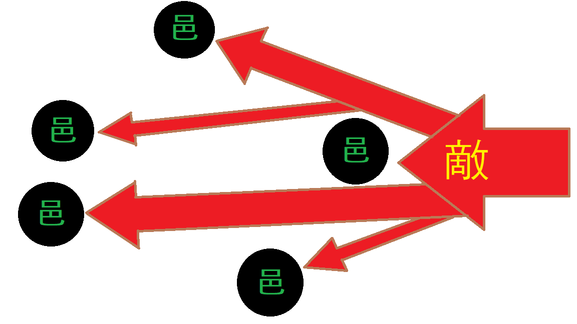 制勝方略중국어의 공격 전투편제는 6진대분군(六鎭大分軍)과 3읍분군(三邑分軍)이었다. 그리고 그 전술적 우수성은 다음과 같다.3. 2. 2. 방어 전술
