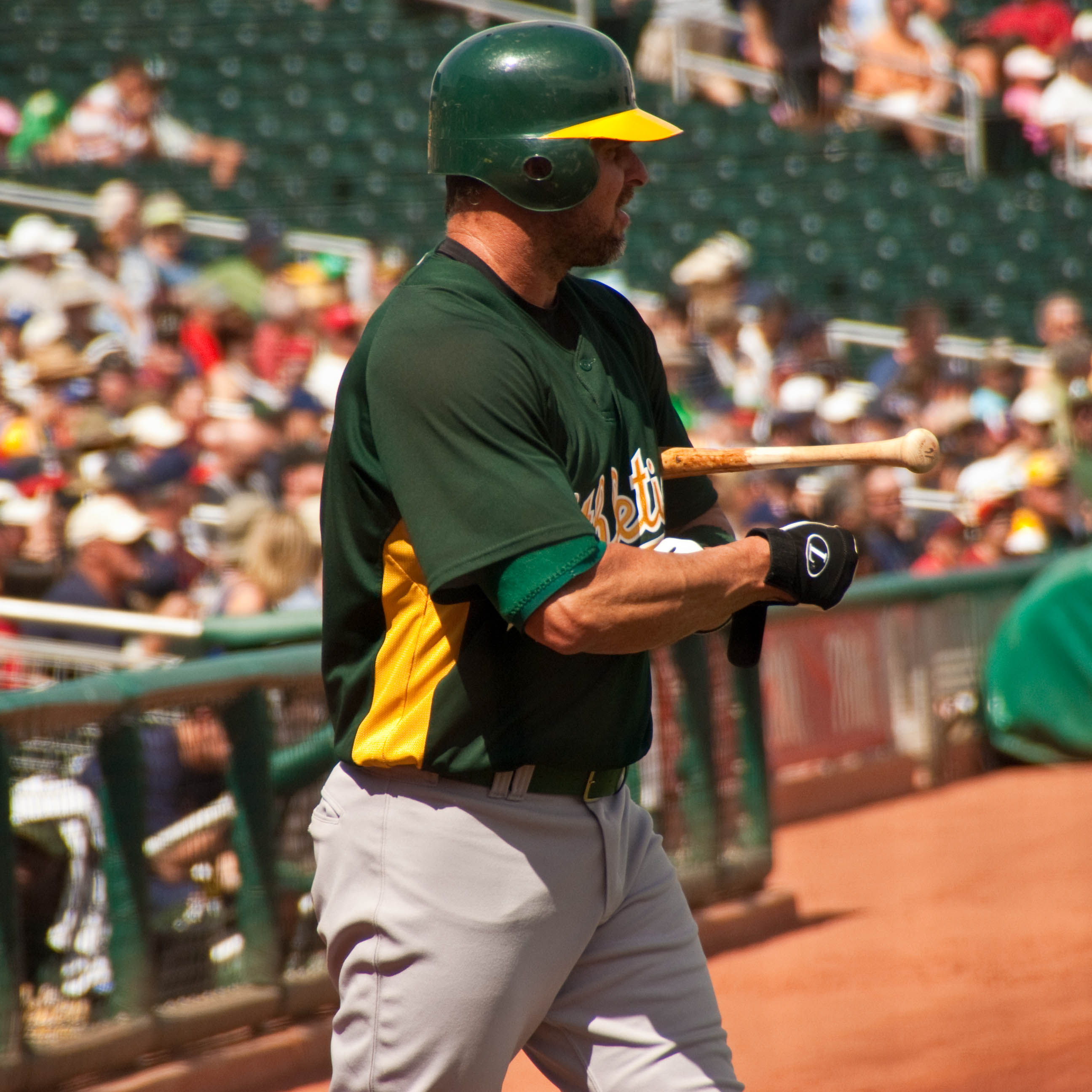 2009년영어 1월 6일, 오클랜드 애슬레틱스와 400만달러에 1년 계약(2010년 구단 옵션 650만달러)을 맺고 친정팀으로 복귀했다.[22][75] 2009년영어 5월 23일, 애리조나 다이아몬드백스와의 경기에서 통산 400번째 홈런을 기록했으나,[25][76] 7월 20일 대퇴사두근 부상으로 부상자 명단에 올랐고,[26][77] 결국 8월 7일 방출되었다.[27][77]