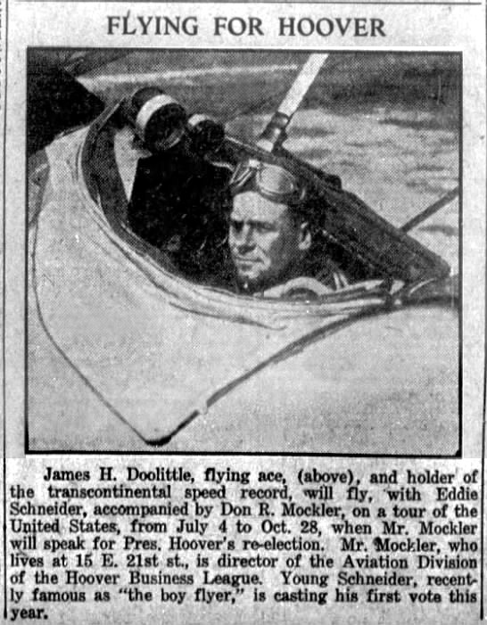 1920년대에 둘리틀은 뛰어난 조종사로 명성을 얻었다. 1922년 드 하빌랜드 DH-4로 미국 최초의 횡단 비행을 성공시켰고,[74] 1925년 슈나이더 트로피 레이스에서 우승했다.[11] 1929년에는 계기 비행을 발전시켜 조종사가 시야 확보 없이도 비행할 수 있게 하는 데 큰 공헌을 했다.[13] 1930년 군에서 예편한 후 셸 석유에서 근무하며 항공 기술 발전에 힘썼다. 특히 100 옥탄 항공 가솔린 개발에 영향을 주었다. 1931년 벤딕스 트로피 레이스, 1932년 톰슨 트로피 레이스에서 우승하며 3대 에어 레이싱 트로피를 모두 석권했다.[75]