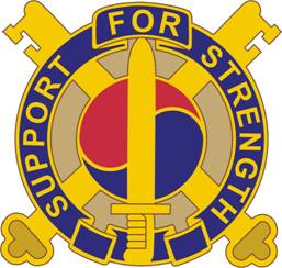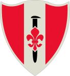 청록색은 무형의 부서와 관련이 있으며, 금색은 탁월함과 높은 이상을 상징한다.[14] 붉은색은 희생과 용기를 의미한다.[14] 검은 전사의 힘, 명예, 지혜, 그리고 부대의 전투 준비 지원을 나타낸다.[14] 백합 문양은 여단이 창설된 루이지애나를 상징하며, 가운데 부분은 창날을 닮아 군사적 힘과 강인함을 나타낸다.[14] 월계수는 승리와 완수를 상징한다.[14] 방패의 두 부분은 지원 부대의 작전 및 전술적 자유 행동을 모두 보호하는 두 가지 임무를 나타낸다.[14] 마름모는 무적의 본질과 최첨단을 전형적으로 보여주며, 여단의 용기, 충성심, 헌신을 강조한다.[14]