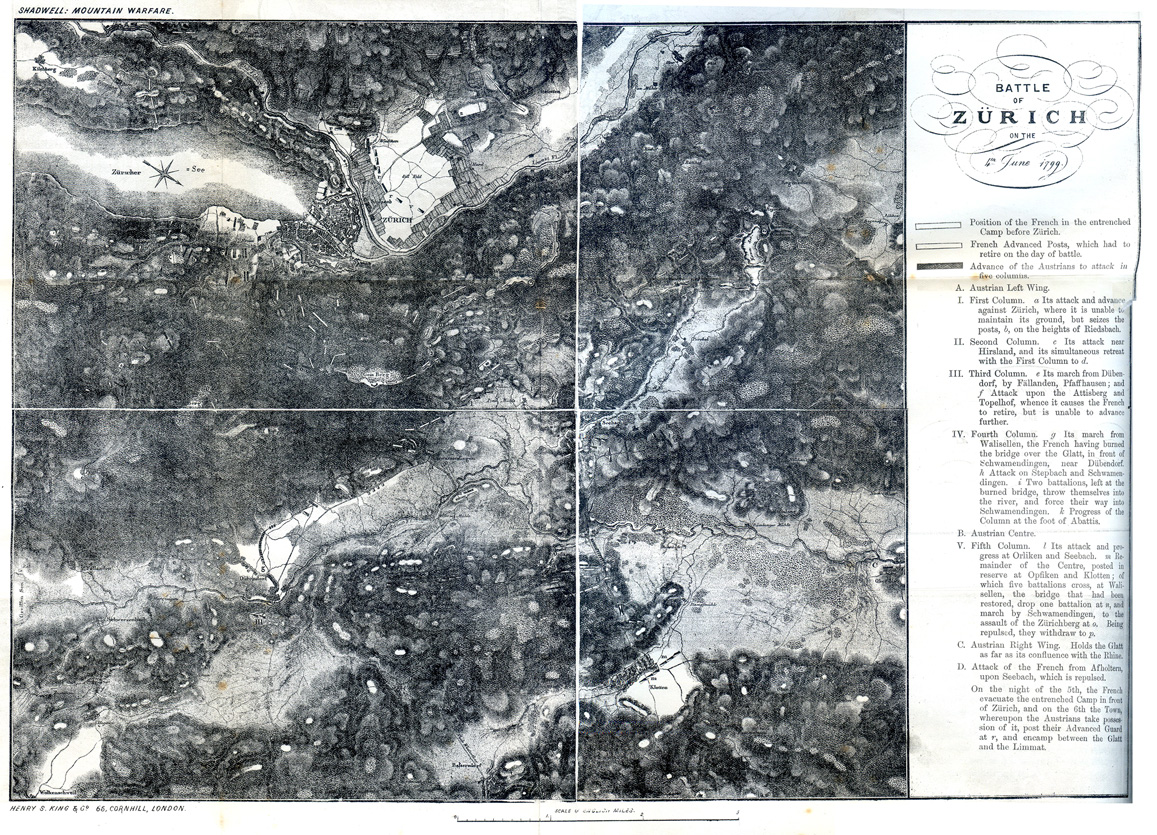 - 취리히베르크: 장 드 디외 술트의 사단이 앙드레오시가 건설한 참호 진지에서 북쪽의 탁 트인 지역을 내려다보며 주둔했다.