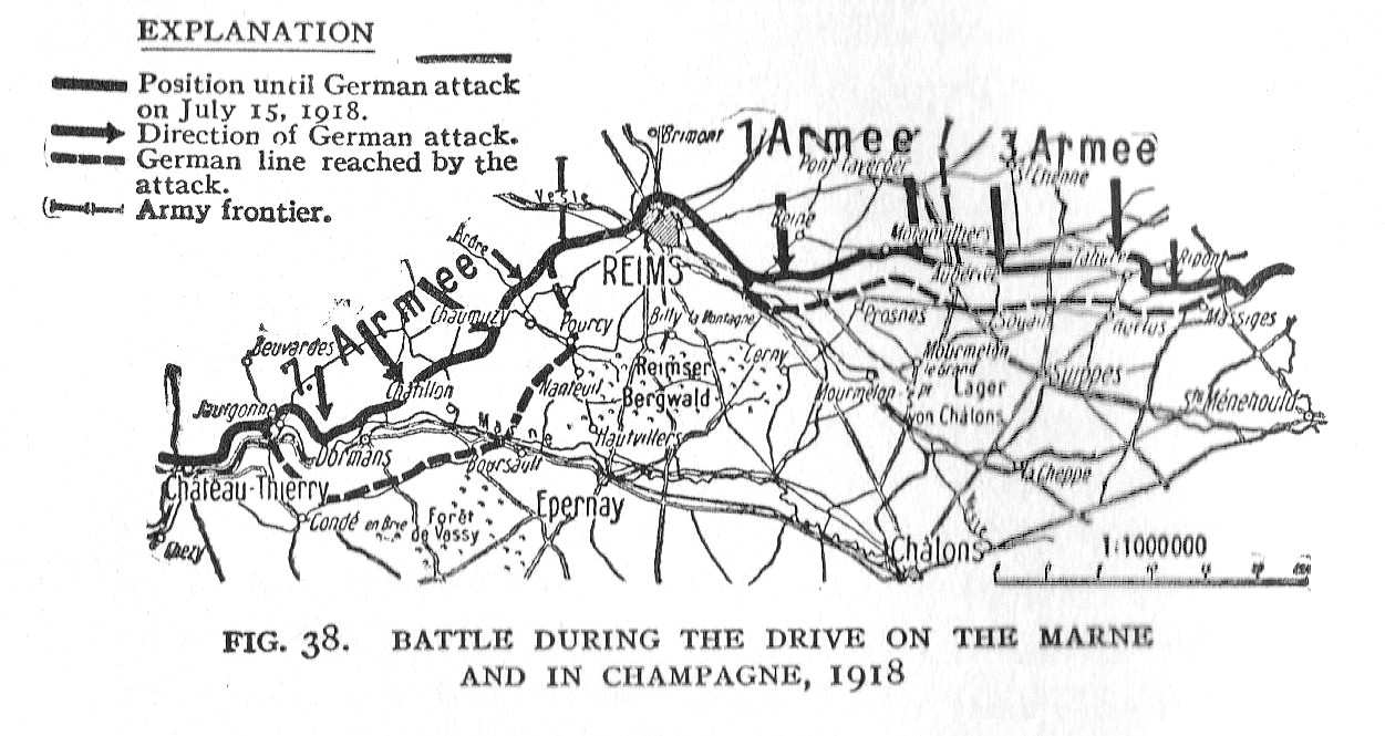 7월 15일, 에리히 루덴도르프 장군은 프랑스 랭스를 포위하고 프랑스군의 전력 분산을 위해 제1군과 제3군의 독일군 23개 사단으로 앙리 구로 휘하의 프랑스 제4군을 공격했다. (제4차 샹파뉴 전투)[3][4] 미국 제42사단은 프랑스 제4군에 배속되었다. 한편, 막스 폰 뵈른이 지휘하는 독일 제7군 17개 사단은 요하네스 폰 에벤이 지휘하는 제9군의 지원을 받아 랭스 서쪽의 장 드구트가 지휘하는 프랑스 제6군을 공격했다(''랭스 산 전투'').[5]