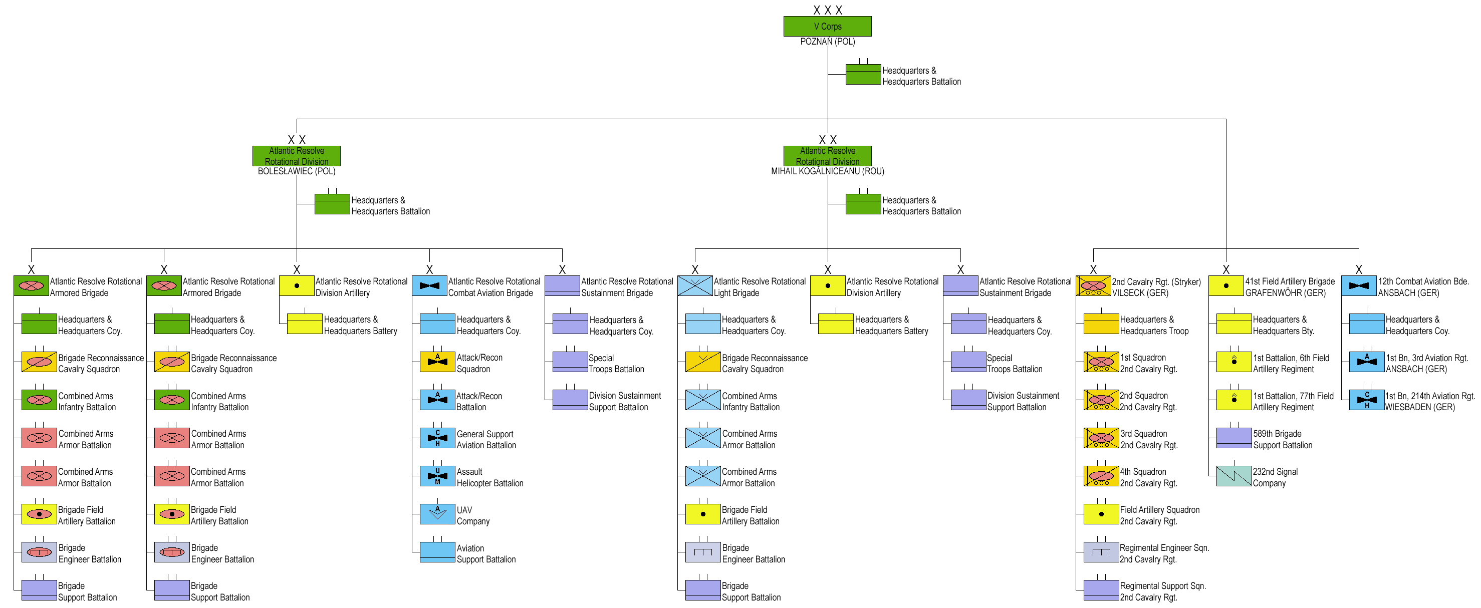 なお、第1歩兵師団は[[アメリカ統合戦力軍|統合戦力軍]]に配属替えされたが、第1機甲師団は、アメリカ本土に駐屯しているものの、指揮系統上は、第5軍団の隷下にあった。