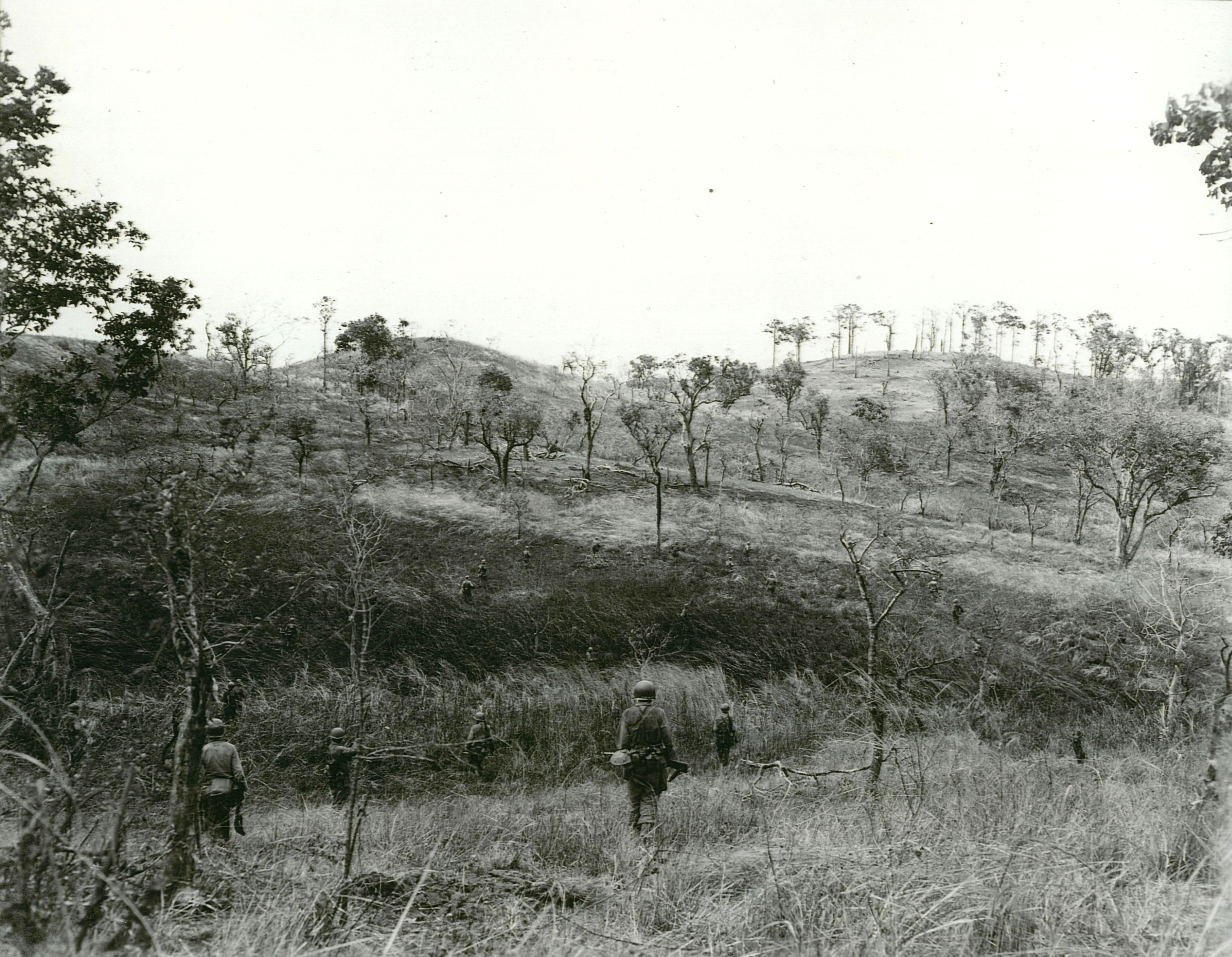 마닐라 근처 코바야시 선에서 언덕을 올라 진격하는 제6보병사단 제20보병연대 I 중대, 1945년 3월