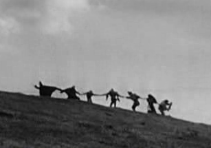 요프와 그의 가족은 폭풍으로부터 그들의 대상차에 피신해 있는데, 그는 그것을 죽음의 천사가 지나가는 것으로 해석한다. 아침에 요프는 기사와 그의 동료들이 죽음의 무도를 추며 언덕을 넘어 끌려가는 환영을 본다.