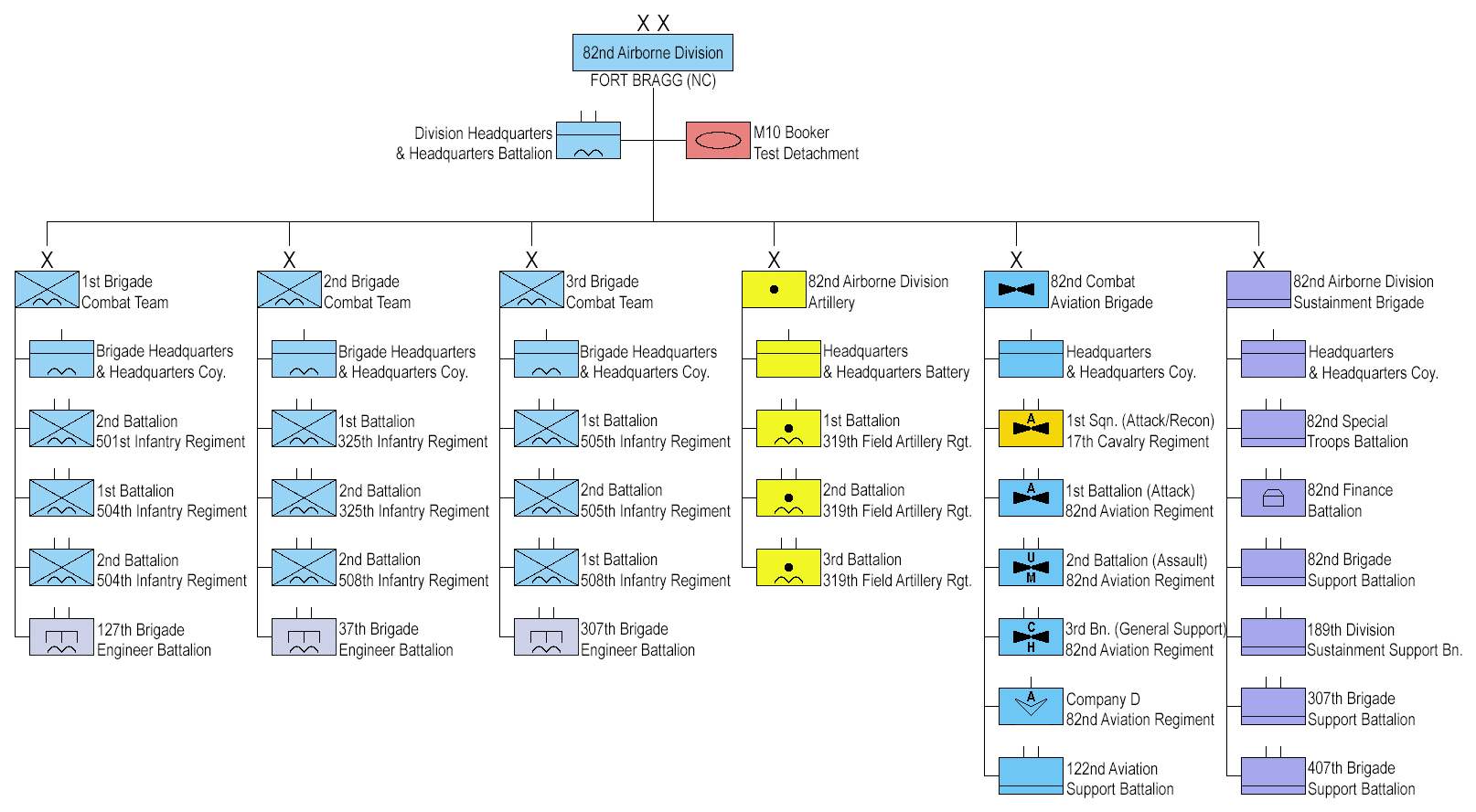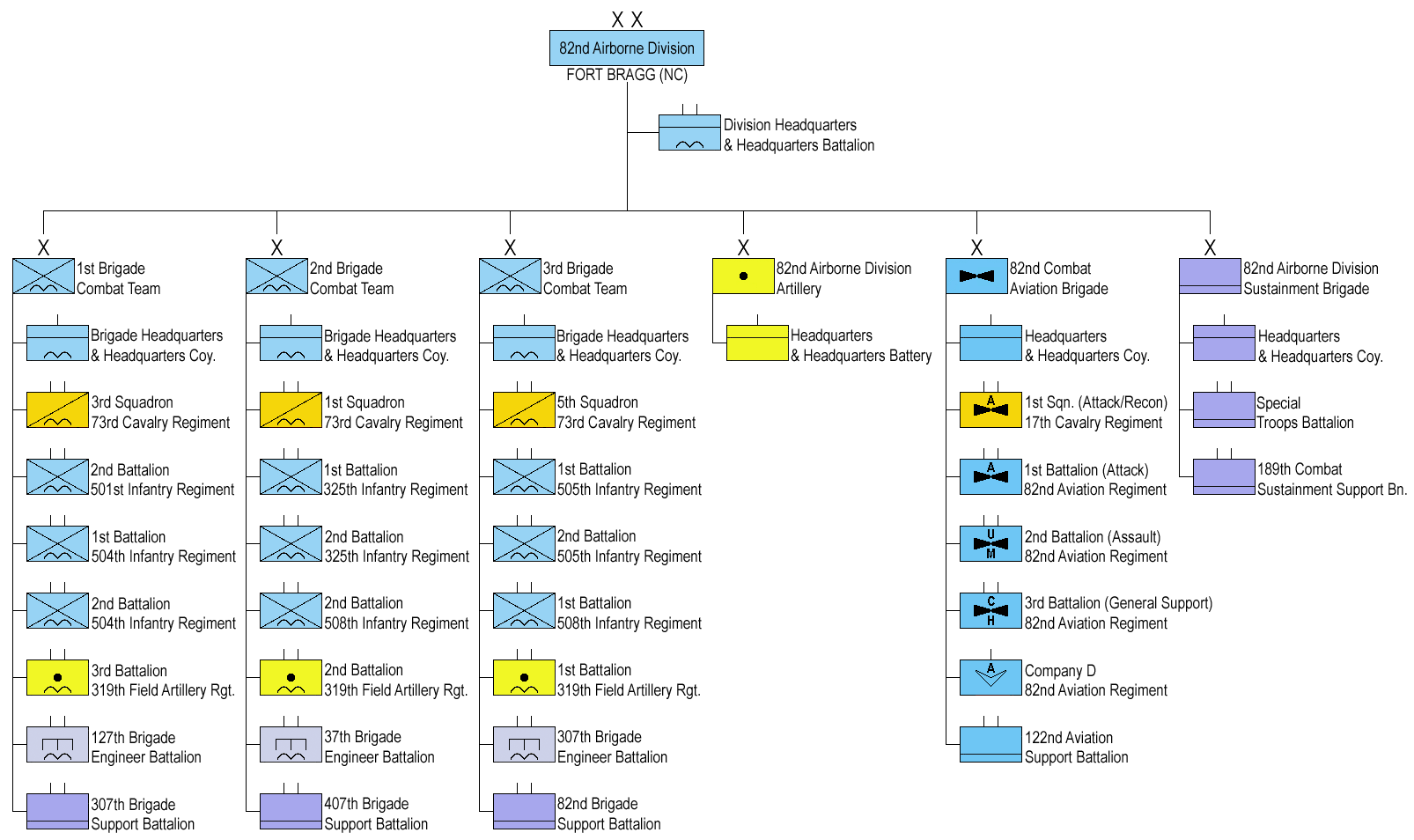 제82공수사단은 1917년 창설된 미국 육군의 보병 사단으로, 제1차 세계 대전에 참전했다. 1942년 공수사단으로 개편되었으며, 제2차 세계 대전, 한국 전쟁, 베트남 전쟁, 걸프 전쟁, 아프가니스탄 전쟁 등 주요 군사 작전에 참여했다. 현재는 3개의 보병 여단 전투단, 포병대, 전투항공여단, 지원여단으로 구성되어 있으며, 유사시 신속한 전개 능력을 갖춘 전략 예비 부대로서 임무를 수행한다.