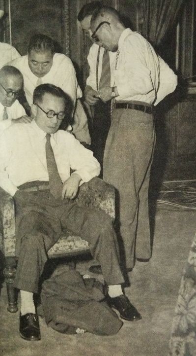 NHK 라디오 방송 '유머 극장'에서 조선 의옥을 풍자하는 콩트를 방송하자, 사토 에이사쿠가 격노하여 해당 프로그램이 중지되었다.[19] 미키 토리로 등 토리로 그룹에 의해 방송된 콩트 "범죄의 그늘에 국회의원 있다"는 조선 의혹에 대한 신랄한 풍자를 담고 있었으며, 이로 인해 1954년 6월 13일에 프로그램이 종영되었다.[10][11]4. 3. 사회적 유행어