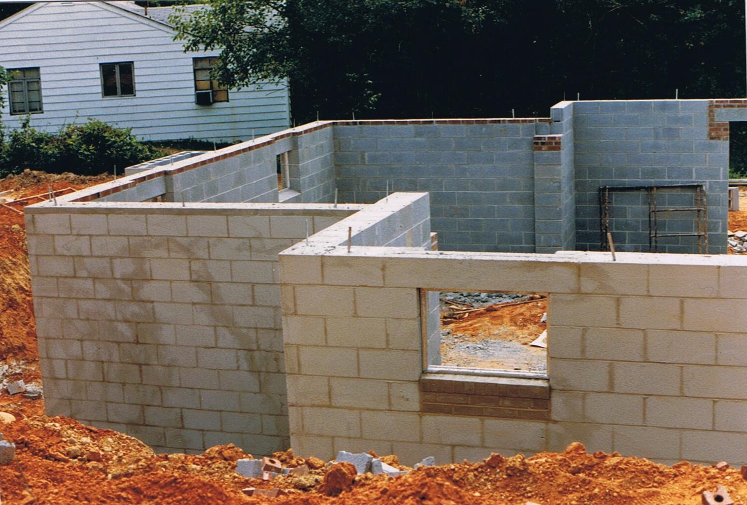- 콘크리트 블록: 시멘트 블록 또는 ''브리즈블록''이라고도 불리며, 일반 벽돌보다 크기가 커서 빠르게 벽을 쌓을 수 있다. 물 흡수율이 낮아 산업 스타일 건물에 주로 사용된다.[1] 강철 철근으로 보강하여 강도를 높일 수 있다.[5] 외관을 위해 다양한 표면 처리가 가능하다.[6]