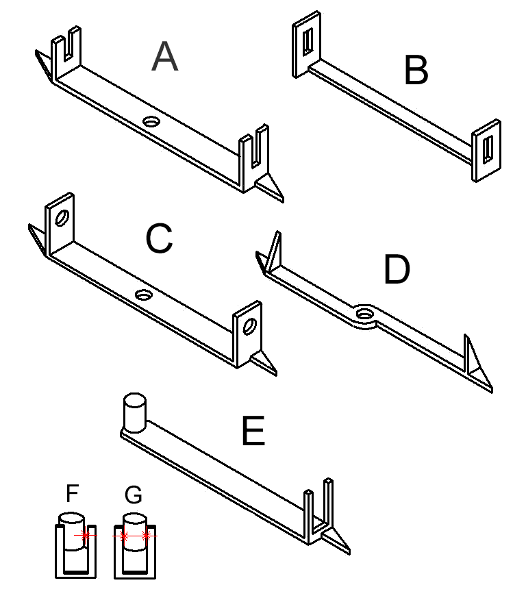 왼쪽 그림은 고대 기기에서 찾아볼 수 있는 다양한 알리데의 일반적인 형태를 보여준다. 이러한 알리데는 제작자의 기술적 숙련도와 예술적 재능을 드러내며 훨씬 더 장식적일 수 있었다. 당시 용어로, 눈금을 읽거나 선을 그리는 알리데의 가장자리를 ''fiducial edge''(기준선)라고 불렀다.