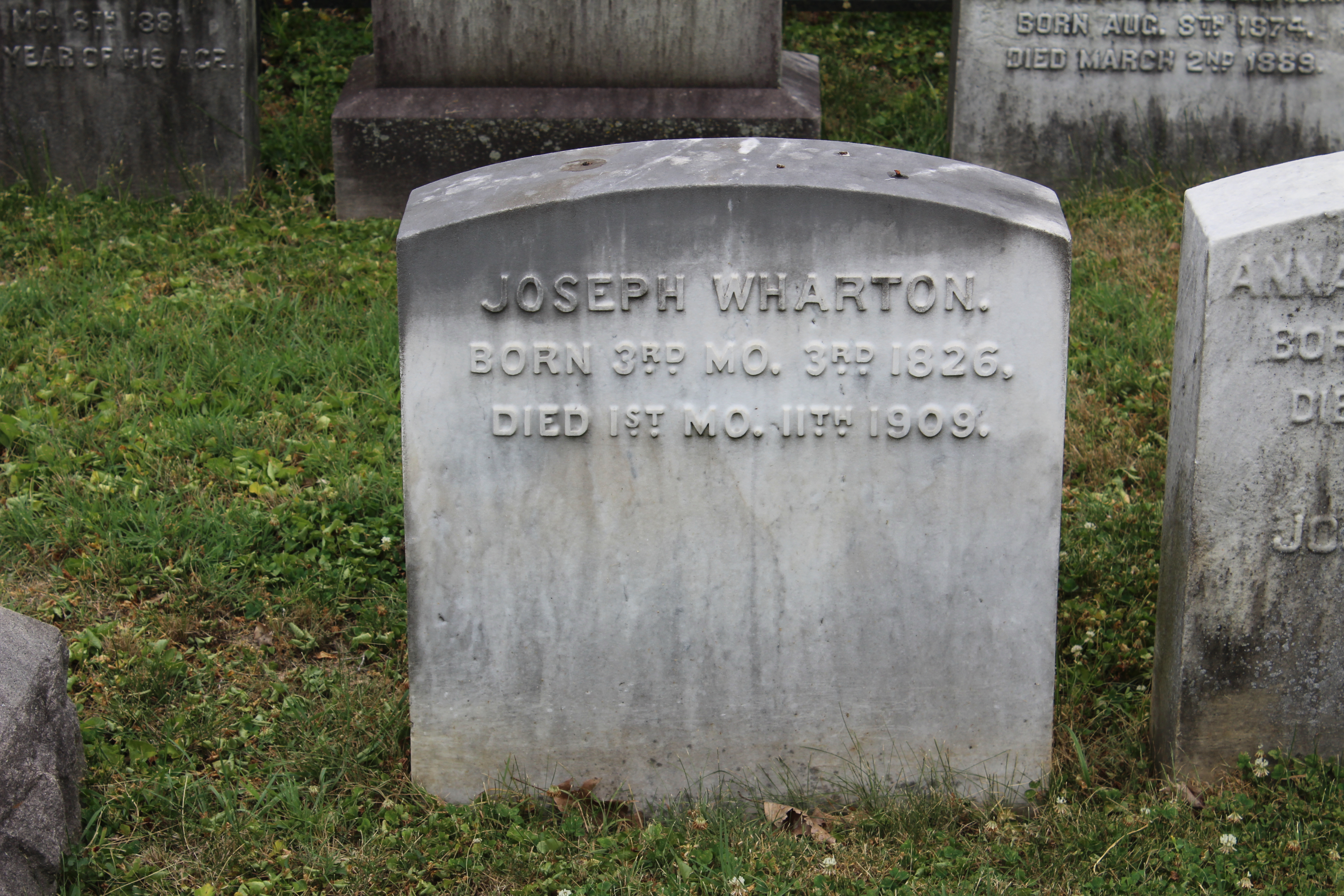 와튼은 1907년 뇌졸중을 겪었으나 회복하였다. 이후 1909년 1월 11일 필라델피아에서 82세의 나이로 사망했다. 그의 묘지는 필라델피아 외곽, 펜실베이니아주 발라 시노이드에 위치한 로럴 힐 묘지에 마련되었다.
