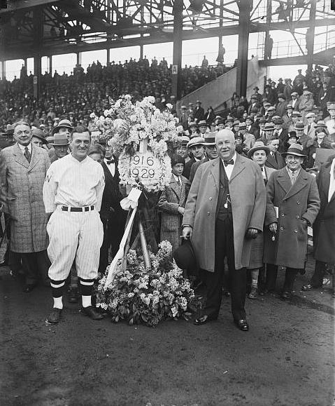 1929년 4월 경기 전 팀을 위해 엘크스 클럽으로부터 꽃을 받은 조 저지 (앞쪽 왼쪽)
