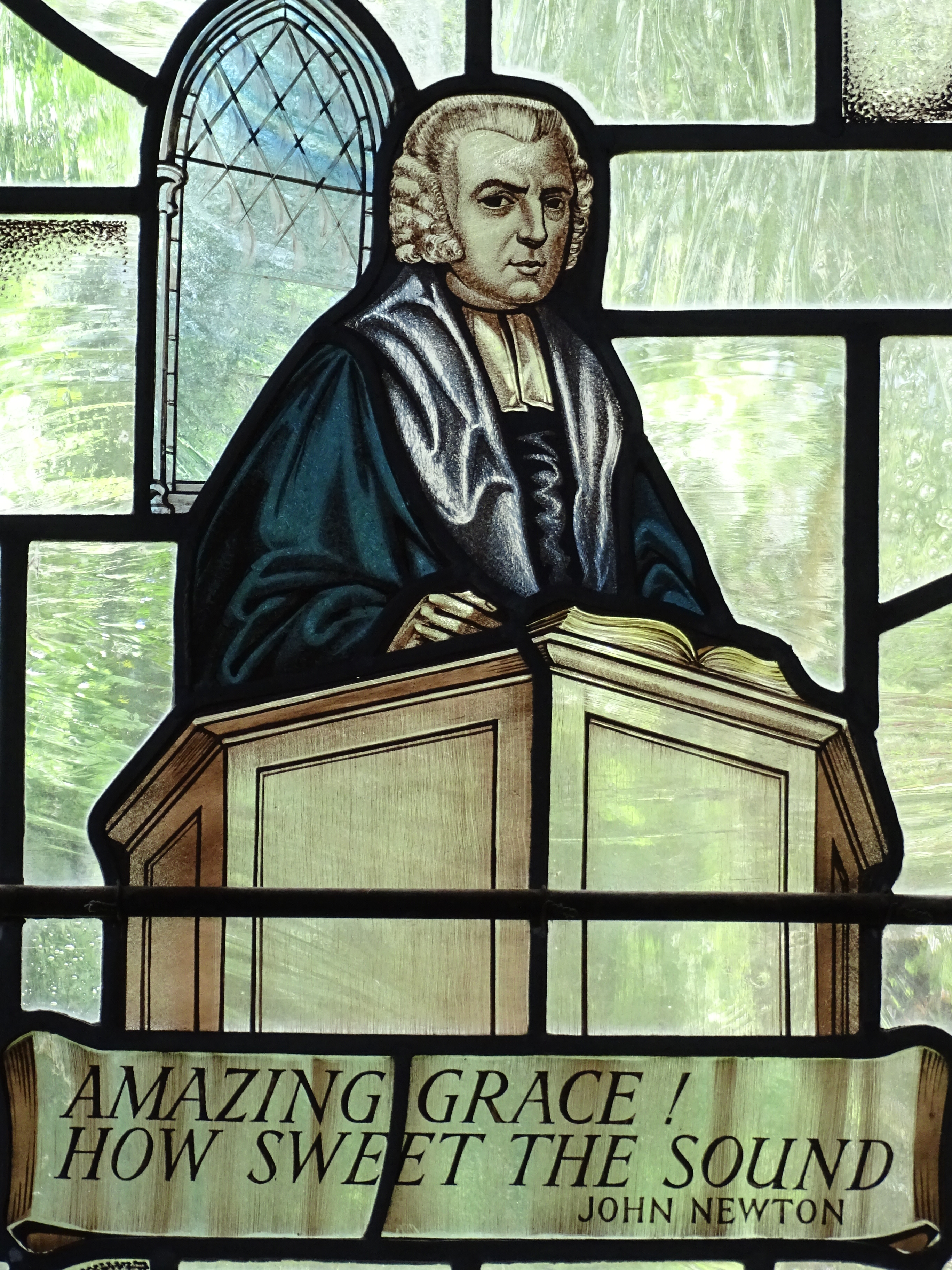 - 뉴턴은 올니에 있는 그의 묘 옆면에 새겨진 자작 묘비명으로 기념된다. 묘비명에는 "존 뉴턴. 사제. 한때 불신자이자 방탕아였던 그는 아프리카에서 노예의 종이었으나, 우리 주님이자 구세주 예수 그리스도의 풍성한 자비로 보존되고, 회복되고, 용서받고, 오랫동안 파괴하기 위해 노력했던 믿음을 설교하도록 임명되었다. 이 교구에서 약 16년간 교구 목사로, 세인트 메리 울노스 교회에서 28년간 교구 목사로 봉사했다."라고 적혀있다.[7]
