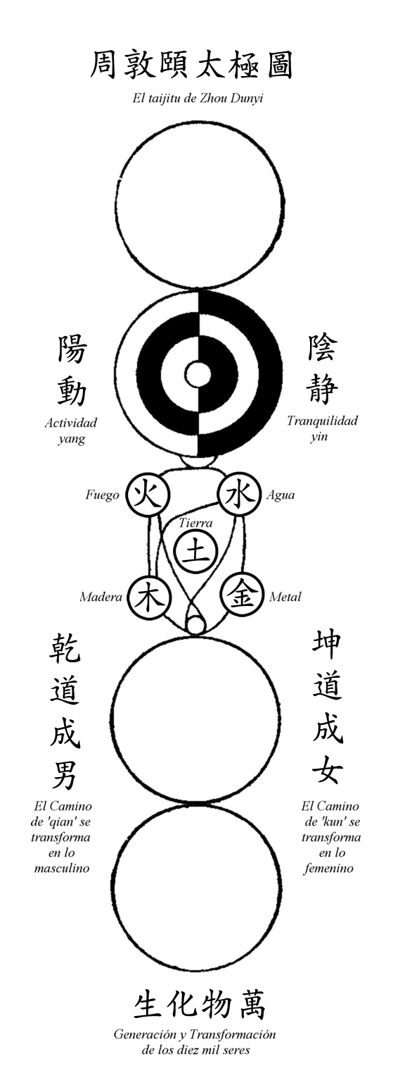 주돈이의 창조 이론을 요약하면 다음과 같다.