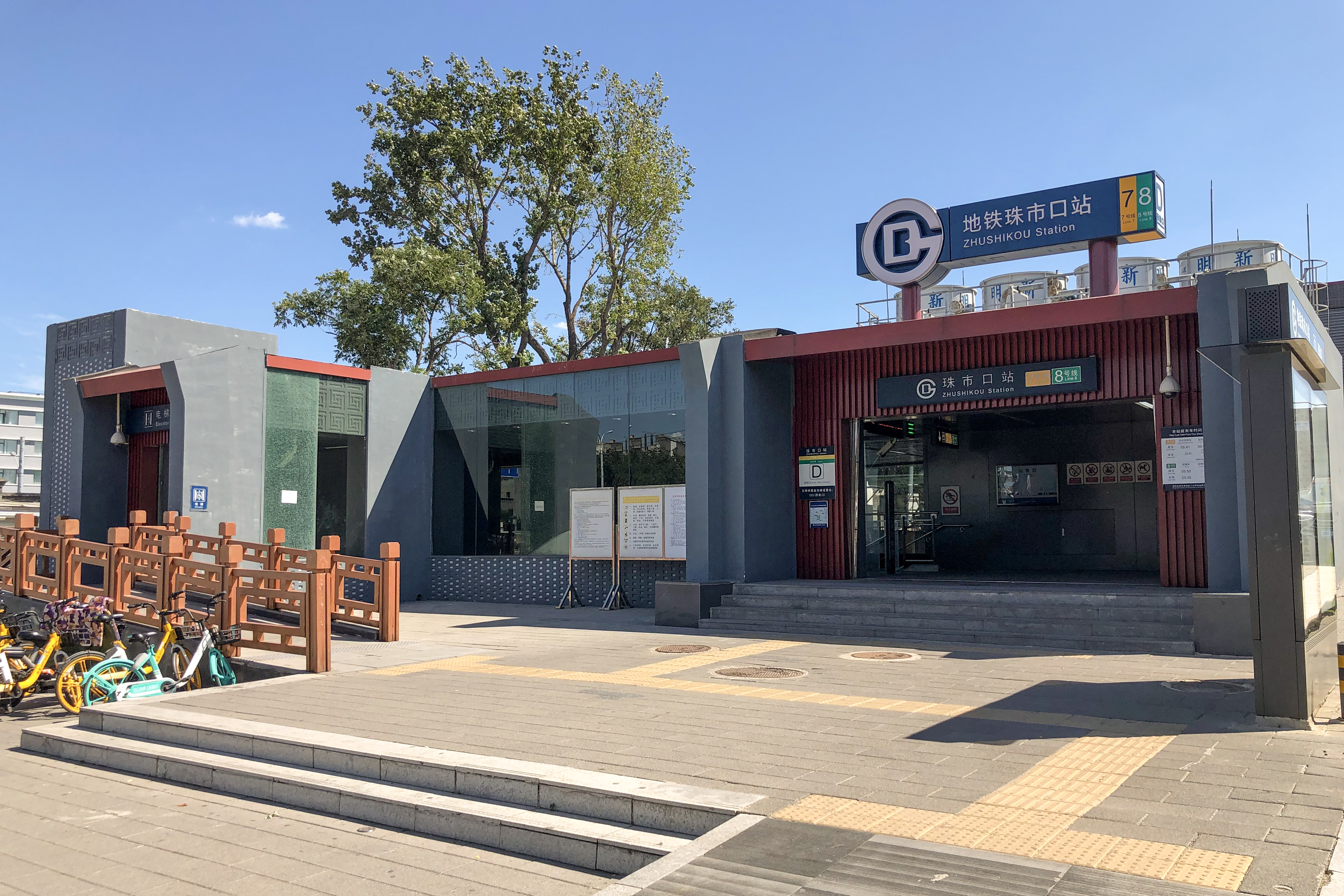 주스커우역은 중화인민공화국 베이징 지하철 7호선과 8호선이 교차하는 지하철역이다. 2014년 12월 28일 7호선 구간 개통과 함께 영업을 시작했으며, 8호선은 2018년 12월 30일 잉하이역까지 개통되면서 남쪽 종착역이 되었다. 2021년 8호선 전 구간이 개통될 예정이다. 이 역은 첸먼대가와 주스커우 동·서대가 교차로에 위치하며, 7호선은 동서 방향으로, 8호선은 남북 방향으로 운행한다. 두 노선 모두 지하에 위치하며, 7호선은 섬식 승강장, 8호선은 1면 2선의 섬식 승강장 구조를 갖추고 있다. 주스커우역은 6개의 출구를 통해 주변 지역으로 연결되며, 첸먼대가, 팔대호동 등과 인접해 있다.