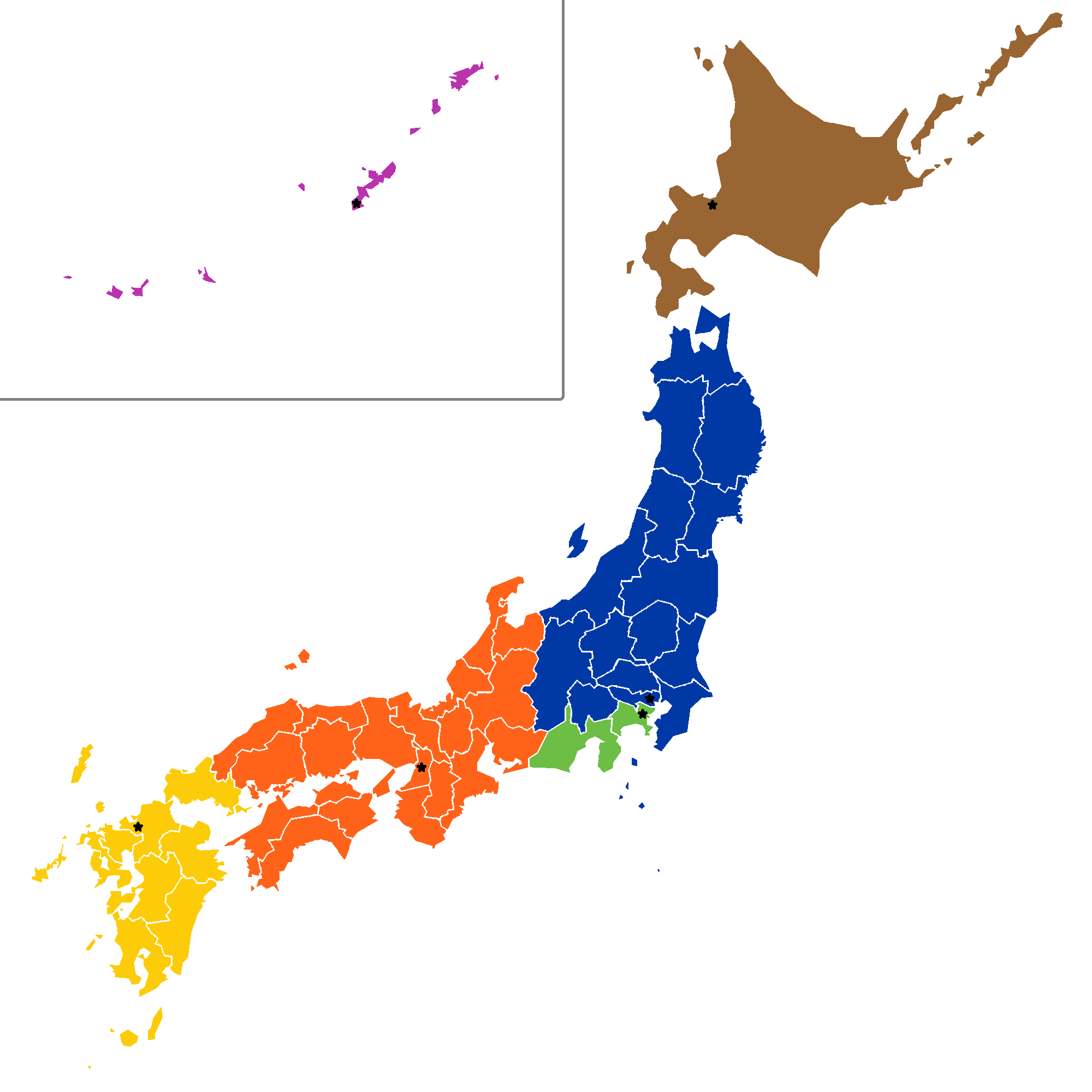 기후현, 아이치현, 시가현, 교토부, 오사카부, 효고현, 도야마현, 이시카와현, 후쿠이현, 미에현, 나라현, 와카야마현, 오카야마현, 히로시마현, 돗토리현, 시마네현, 에히메현, 도쿠시마현, 고치현, 가가와현 |