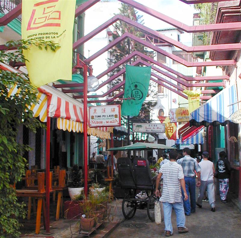 한때 라틴 아메리카의 차이나타운 중 가장 컸던 아바나 차이나타운(Barrio Chino de La Habana)은 현재 세계에서 가장 작은 규모이며, 주로 중국 식당이 즐비한 작은 골목길에 집중되어 있다. 대부분의 중국계 쿠바인은 차이나타운 밖에서 거주한다.[10]