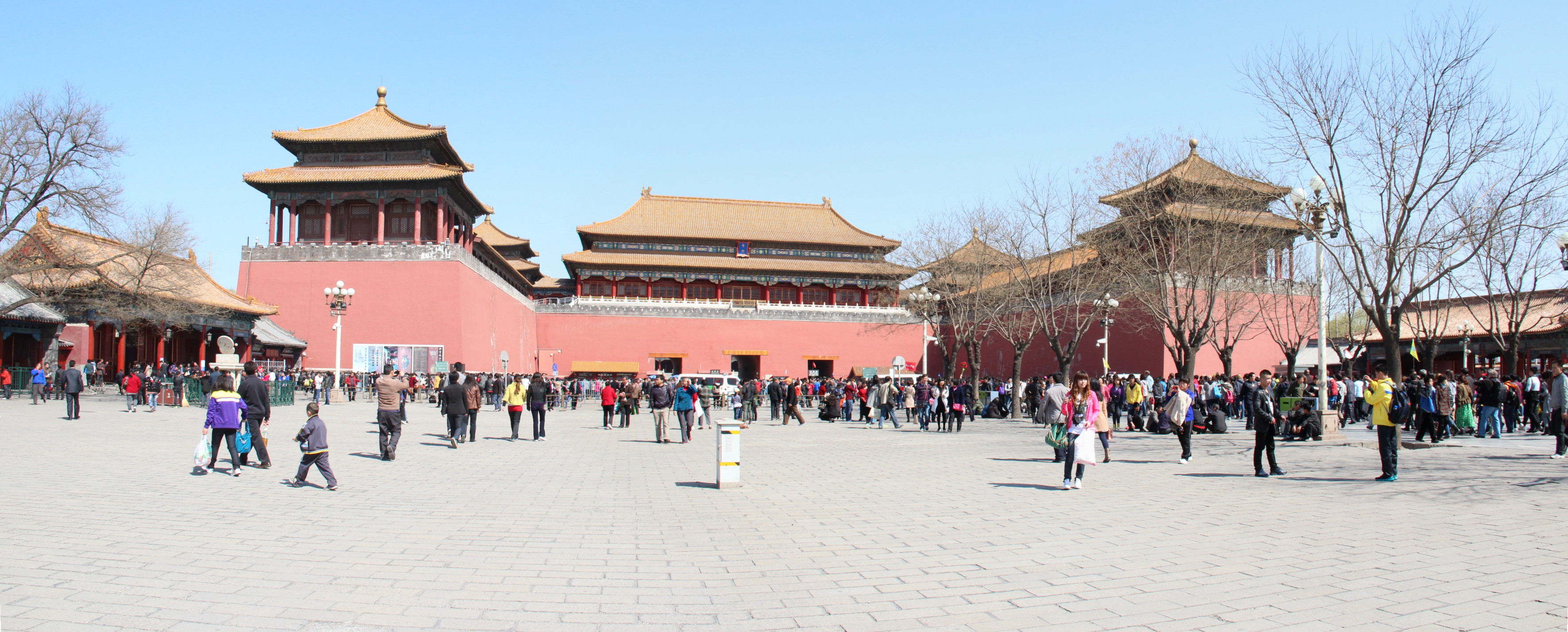 자금성의 전당과 궁궐은 서양의 웅장한 건물과 비교했을 때 천장이 낮지만, 외부의 모습은 중화 제국의 모든 것을 포괄하는 본질을 보여준다. 중국의 전통 건축, 특히 부유층이나 지배층·종교 관련 건물은 유럽과 정반대로, "높이"보다는 ""이나 "넓이"를 중시한다. 중국인에게는 "이 사는 천국에 최대한 가까이 다가간다"는 의식은 별로 없고, 오히려 "외부 세계의 일체를 거부하고, 광대하고 폐쇄적인 공간 속에서 자신만의 세계를 즐긴다"는 의식이 더 강하다[82]. 이 때문에 중국의 전통 건축에서는 "수직으로 높은 벽을 만드는 기술"이 적고, 오히려 "부지가 좁은데 건물을 높게 짓는 것"은 매우 보기 흉하다고 여겨진다.