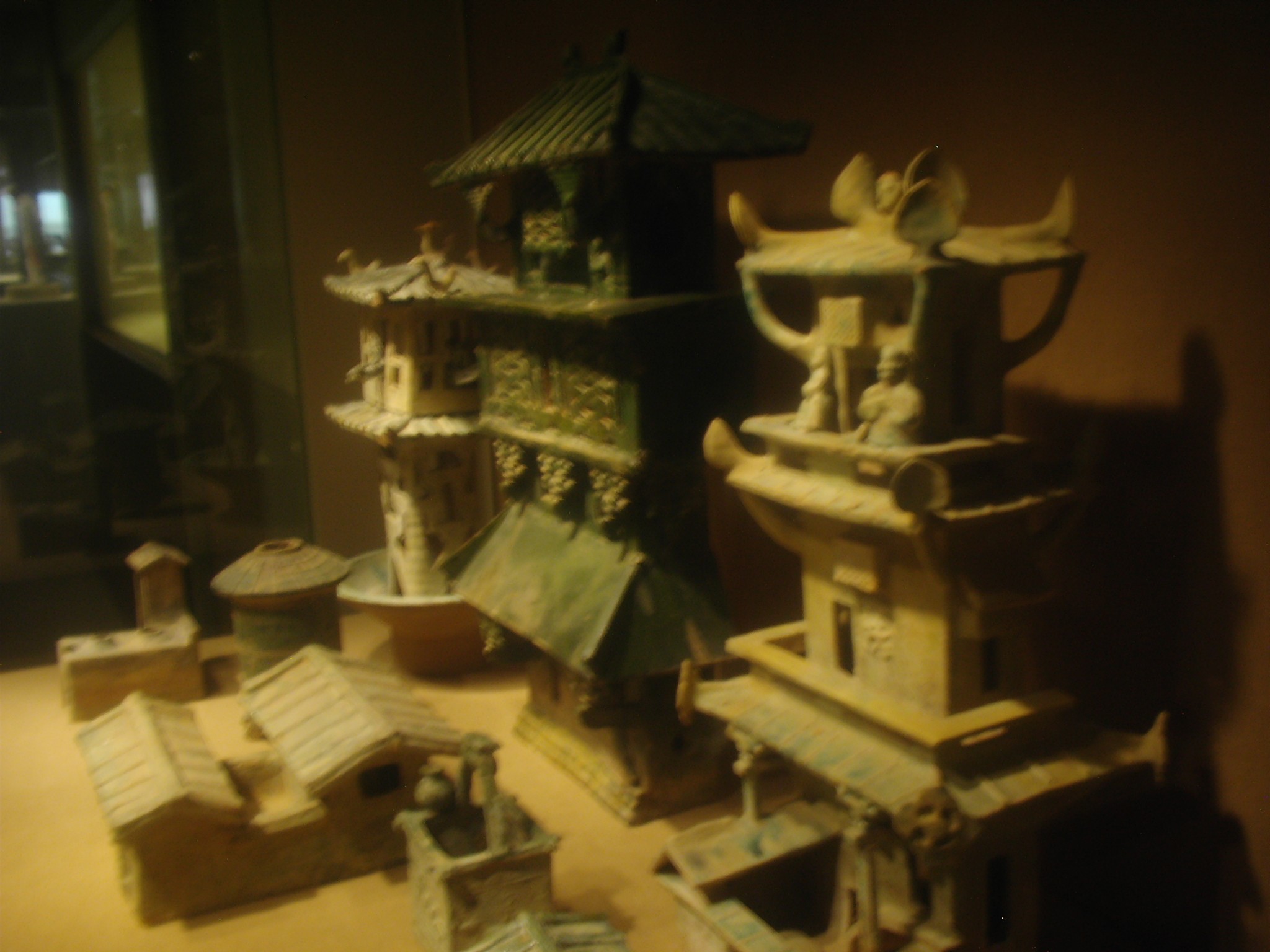 당나라 시대(618–907)의 삼채(三彩) 도자기 저택으로, 시안 서부 교외 중부 마을의 당나라 시대 무덤에서 발굴되었다.
