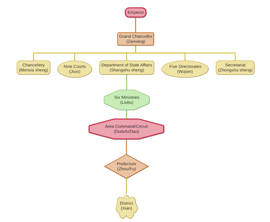 고대에는 부조의 관직에 따라 자손이나 친족에게 관직을 부여하는 제도가 있었다.[93] 그러나 수나라 양견(문제)은 가문이나 신분에 관계없이 누구나 응시할 수 있는 과거제를 도입하여 인재 등용의 혁신을 꾀했다.[93] 이 제도는 당시로서는 세계적으로도 매우 혁신적이었지만, 수나라부터 당나라까지는 큰 효과를 발휘하지 못했다.