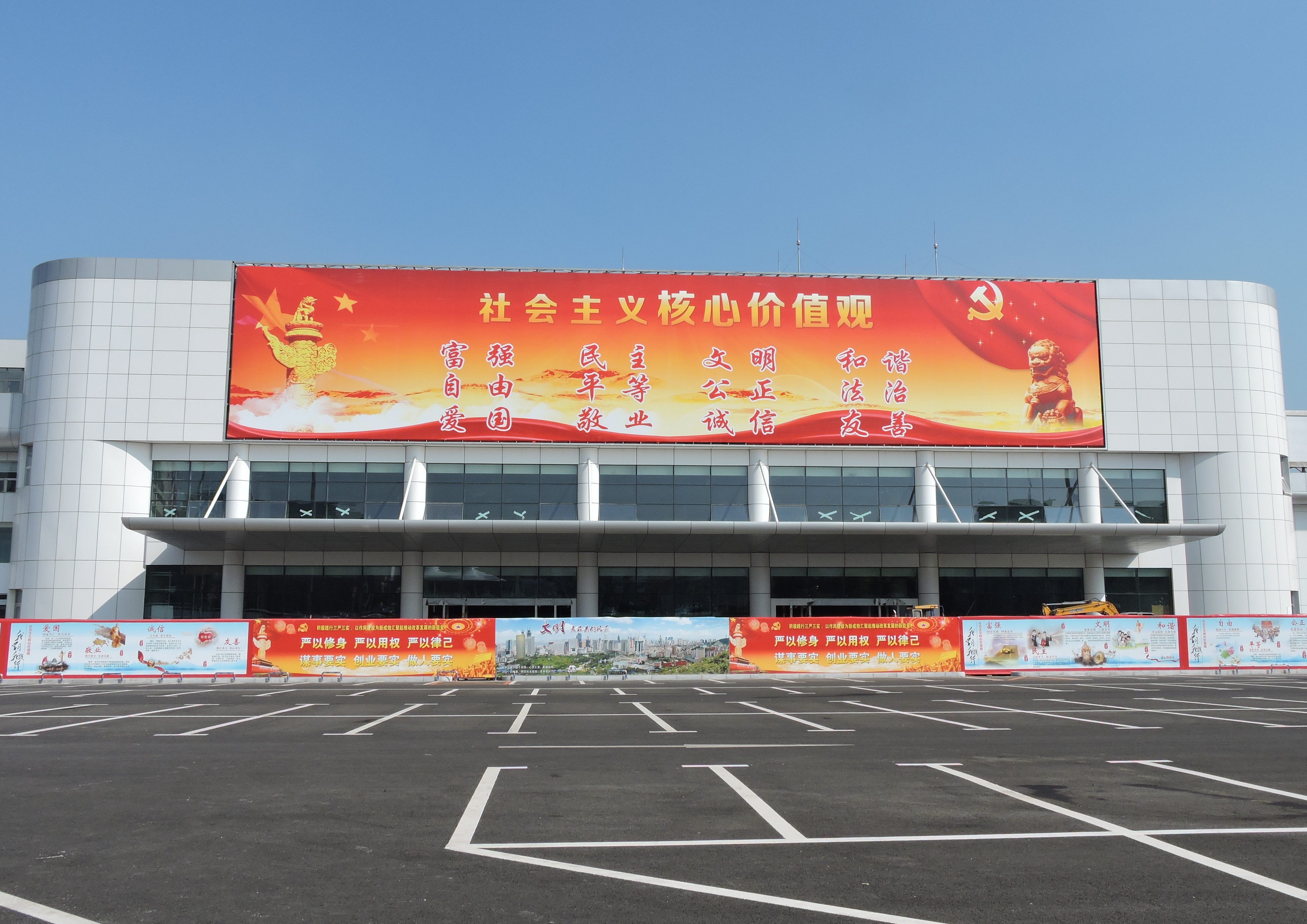 중국 공산당의 12가지 사회주의 핵심 가치를 나열한 거대한 포스터 (2017년).