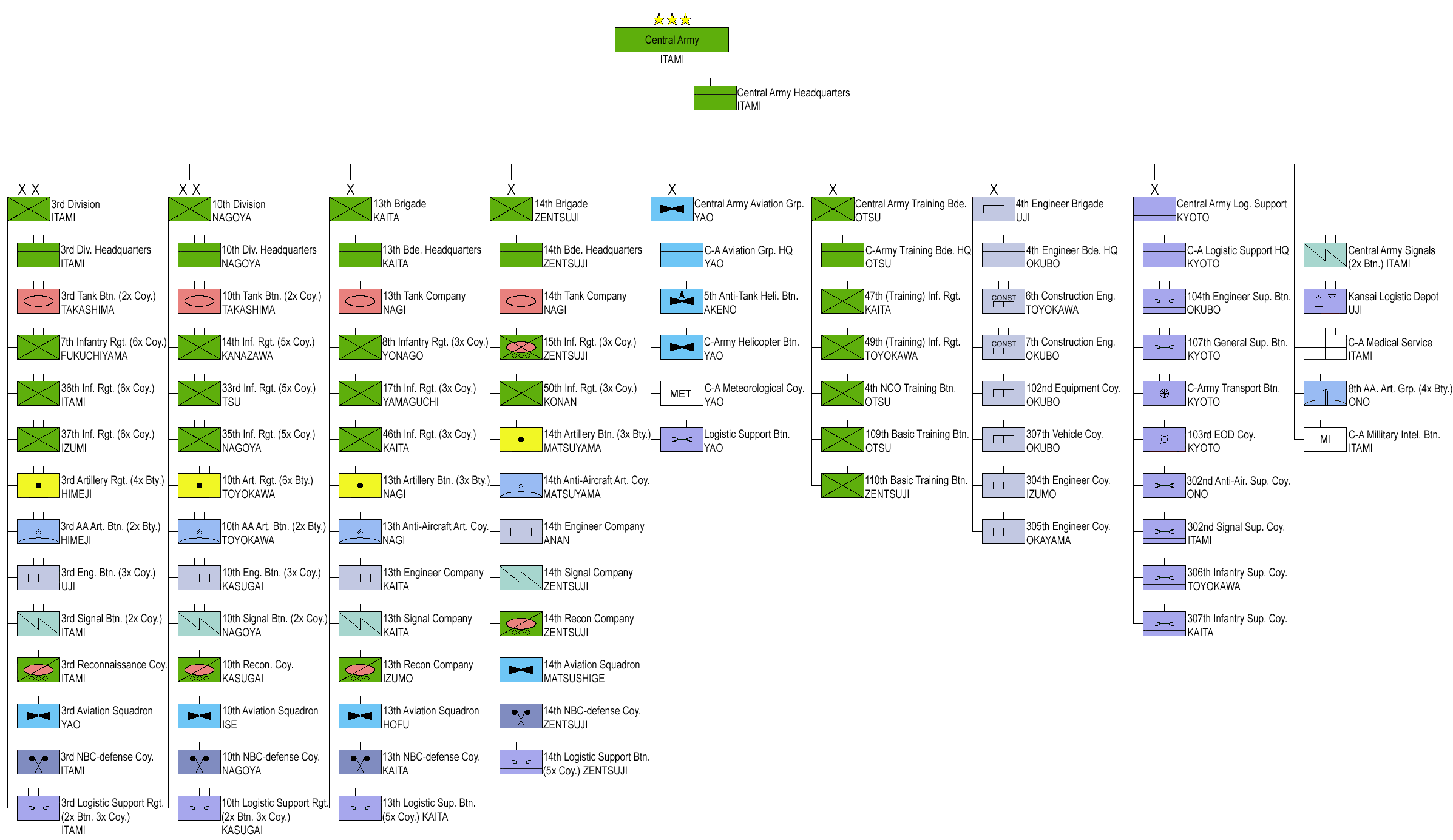 - # 중부 방면 특과대 (마쓰야마 주둔지)가 신편되었다. (평시 14여단 예속).