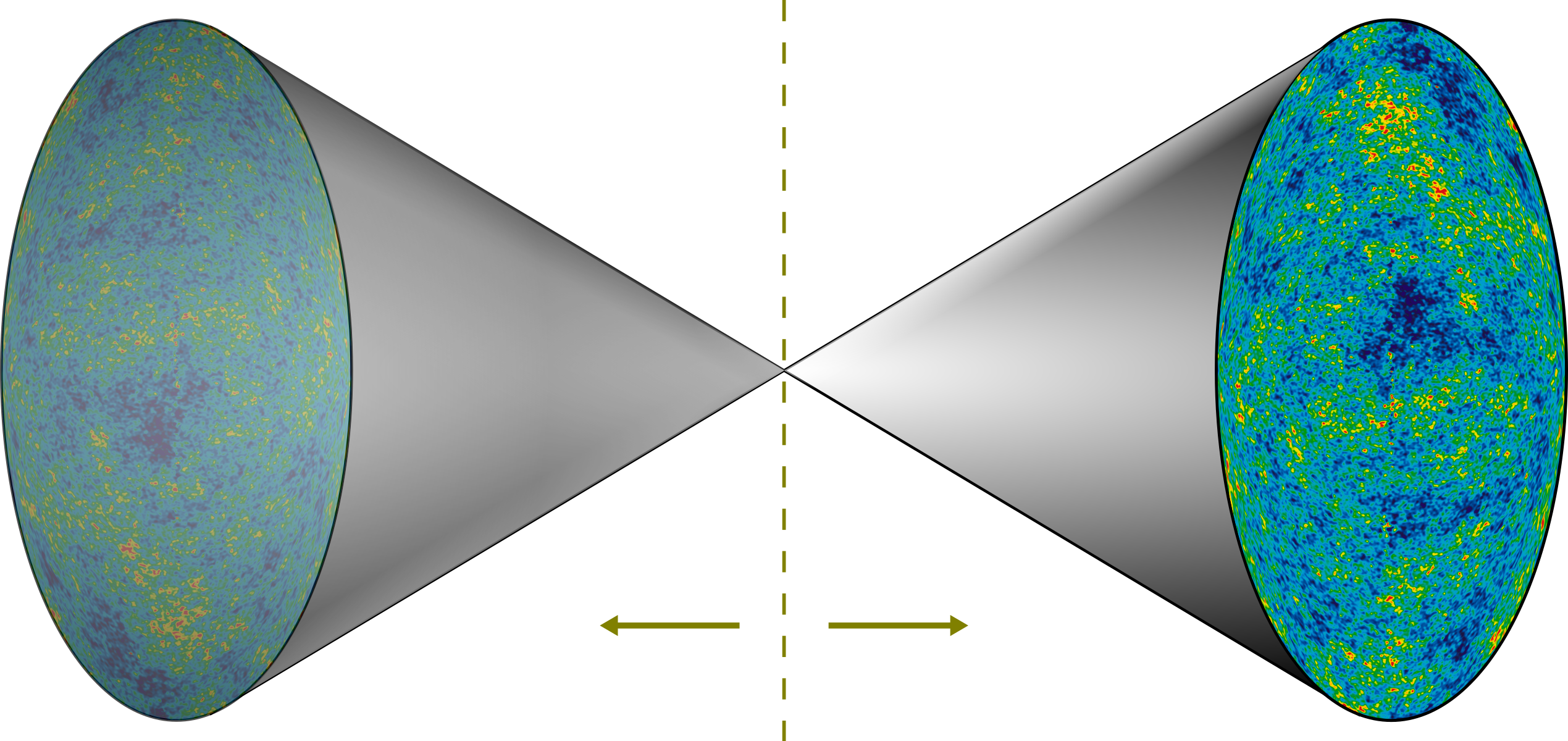 현재 우주의 상태는 CPT 대칭성을 위배하지 않는다. 빅뱅은 고전적으로나 양자역학적으로나 모두 우주-반우주 쌍으로 구성된 양면성 사건으로 간주될 수 있기 때문이다. 즉, 이 우주는 반우주의 전하(C), 공간 반전(P), 시간 반전(T) 이미지이다. 이 쌍은 빅뱅 시대에서 직접적으로 뜨겁고 방사선이 지배하는 시대로 나타나지 않았다. 반우주는 빅뱅으로부터 시간을 거슬러 흘러가며 커지고 반물질이 지배할 것이다. 우리 우주와 비교했을 때 공간적 특성은 반전되며, 이는 진공에서 전자-양전자 쌍을 생성하는 것과 유사한 상황이다.[13] 캐나다 페리미터 이론물리학 연구소의 물리학자들이 고안한 이 모델은 우주 마이크로파 배경 방사(CMB)의 온도 변동이 빅뱅 특이점 근처 시공간의 양자역학적 특성 때문이라고 제안한다.[13] 우리 우주의 미래의 한 점과 반우주의 먼 과거의 한 점은 고정된 고전적인 점을 제공하는 반면, 모든 가능한 양자 기반 순열은 그 사이에 존재한다. 양자 불확정성으로 인해 우주와 반우주는 서로 완벽한 거울상이 아니다.[14]