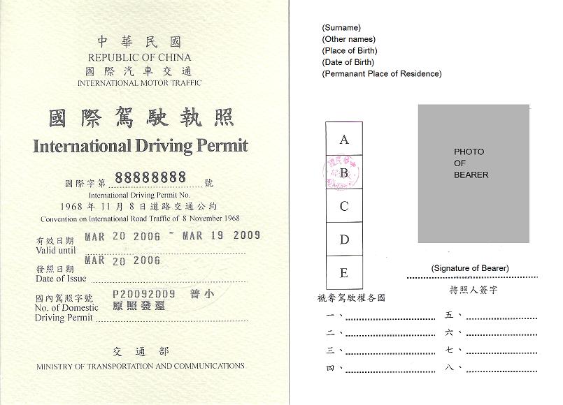 국제 운전 면허증중화민국 운전 면허증 소지자는 국제 운전 면허증 발급 가능