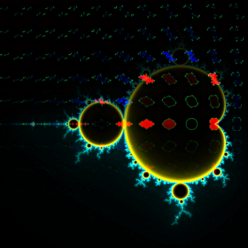 파투 영역에 색을 칠하기 위해, 작은 값 ε을 설정하고 반복 시퀀스 가 을 만족할 때 중지하도록 한다. 여기서 는 사이클 'C'의 한 점이다. 점 'z'에 숫자 'k'(또는 실수 반복 횟수)에 따라 색을 입힌다. 에서 특정 각도 'θ'로 방향을 정하면, 이 방향에서 에서 나오는 필드선은 숫자 의 인수 'ψ'가 다음 조건을 만족하는 점 'z'로 구성된다.