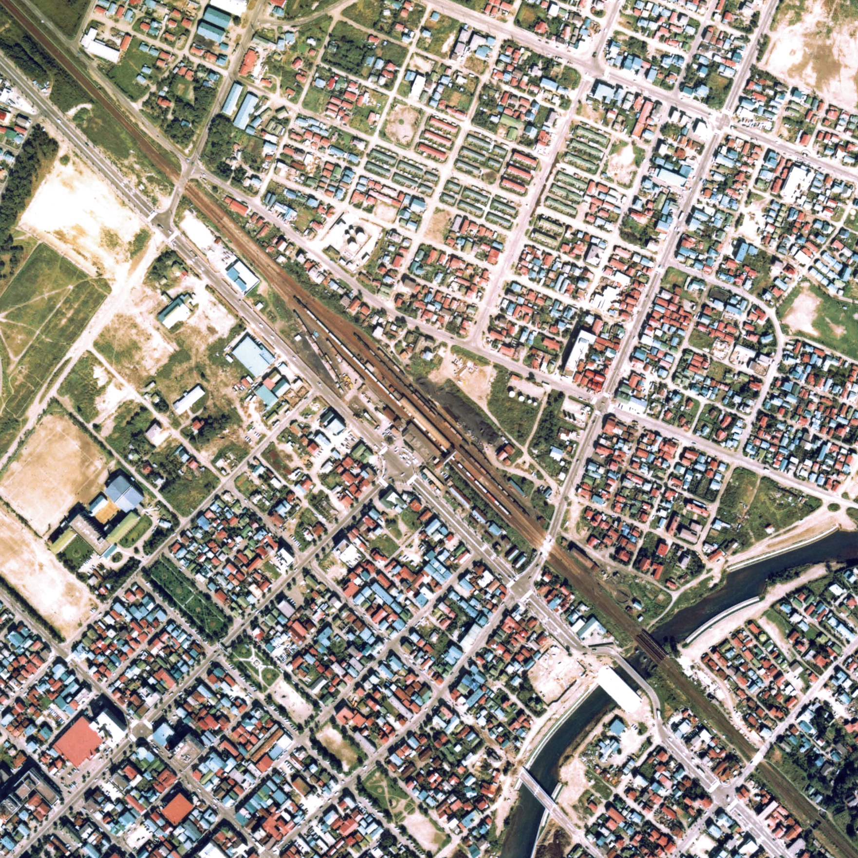 1976년 지상역 시대의 마지막 무렵의 지토세역과 주변 약 1km 범위.