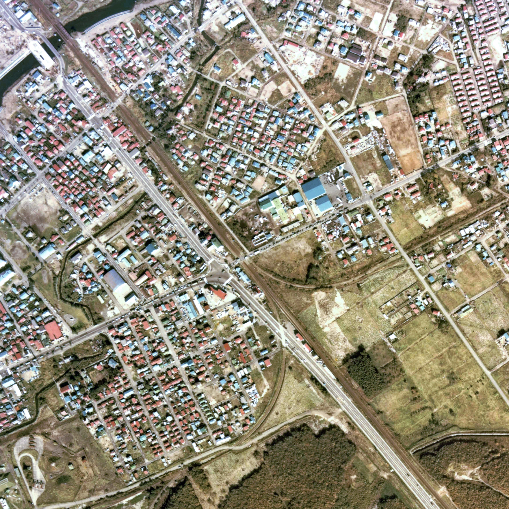 1976년 지토세역 남쪽에 있던 군용 인입선과 주변 약 1km 범위.