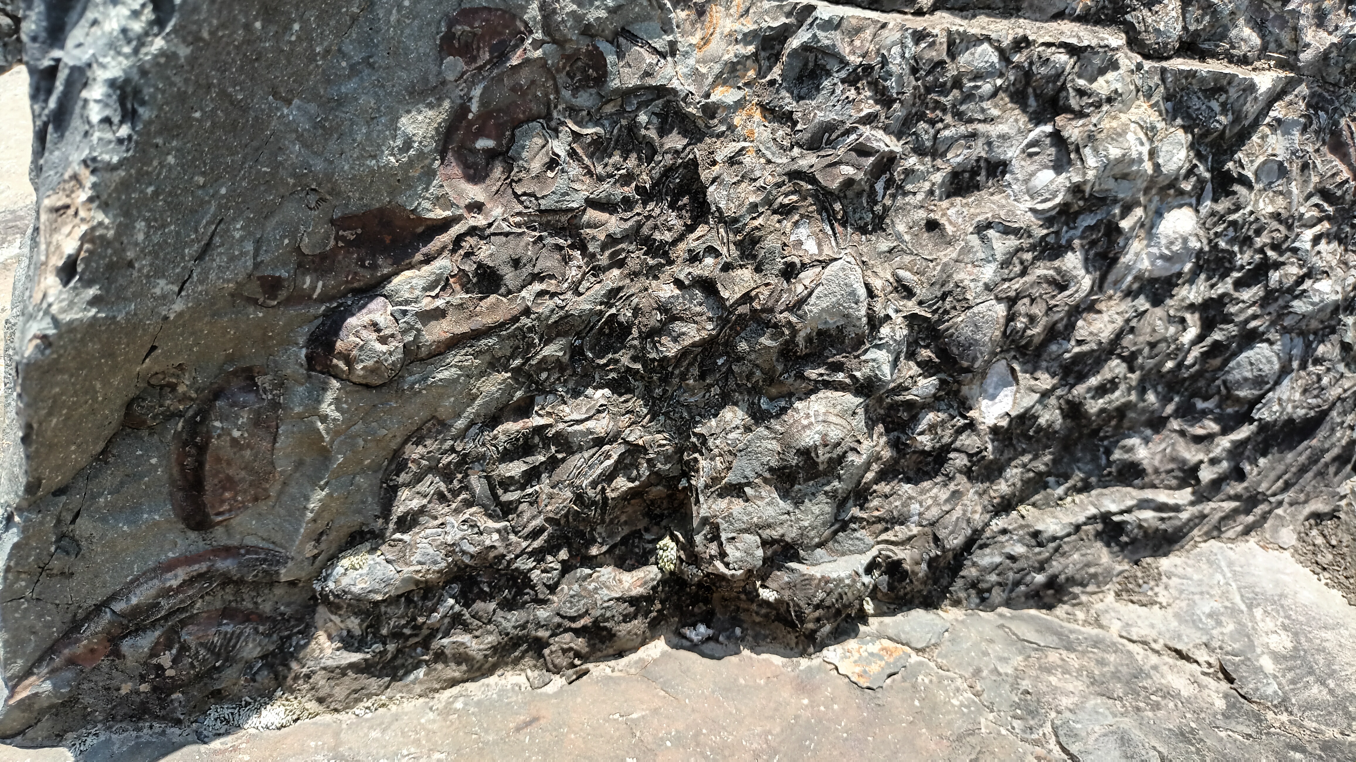 - 중부: 석회암과 석회암에 약 40 cm 두께로 3~4회 얇게 끼어 있는 충식(蟲蝕; vermicular) 셰일로 구성되며, 이 층에서 많은 두족류와 삼엽충 화석이 발견되었다.