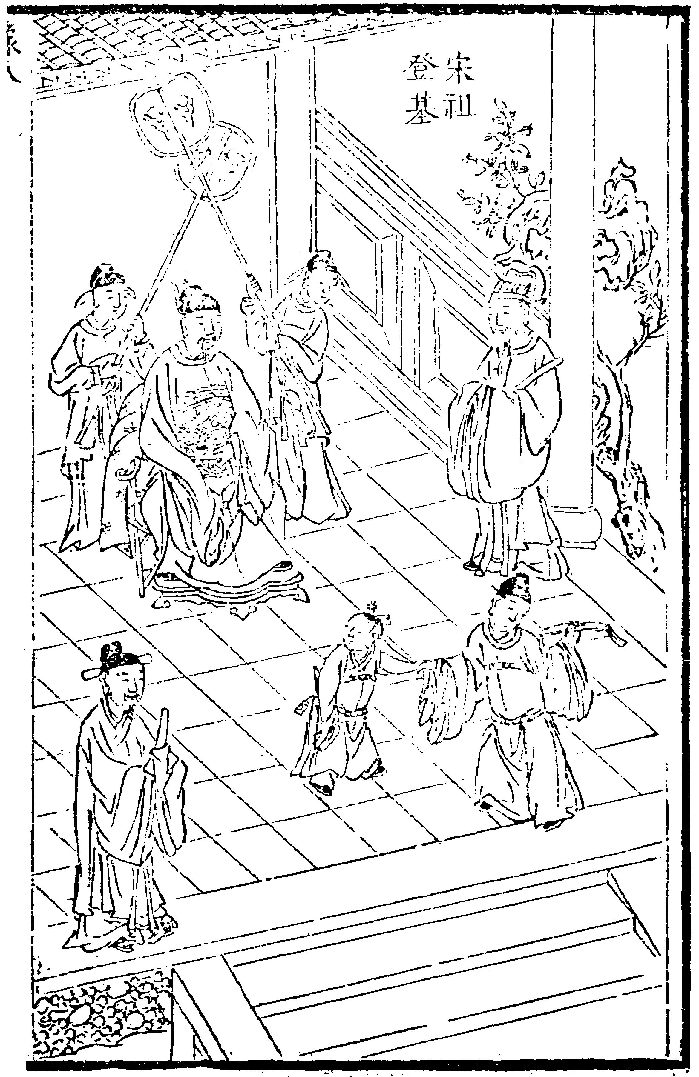 960년, 북방의 대국 요나라의 군대가 쳐들어왔다는 소식을 접한 후주 조정은 전전도점검 조광윤을 국방 총수로 임명하여 요나라 군대에 대처하게 했다. 조광윤이 진교에서 술을 마시고 잠든 사이, 군인들은 조광윤의 동생 조광의를 끌어들여 조광윤에게 황제가 되라고 요구했다. 조광윤은 부하들이 준비한 황포를 걸치고 개봉으로 돌아가 공제로부터 선양을 받아 황제가 되었다. 이가 북송의 태조이다.