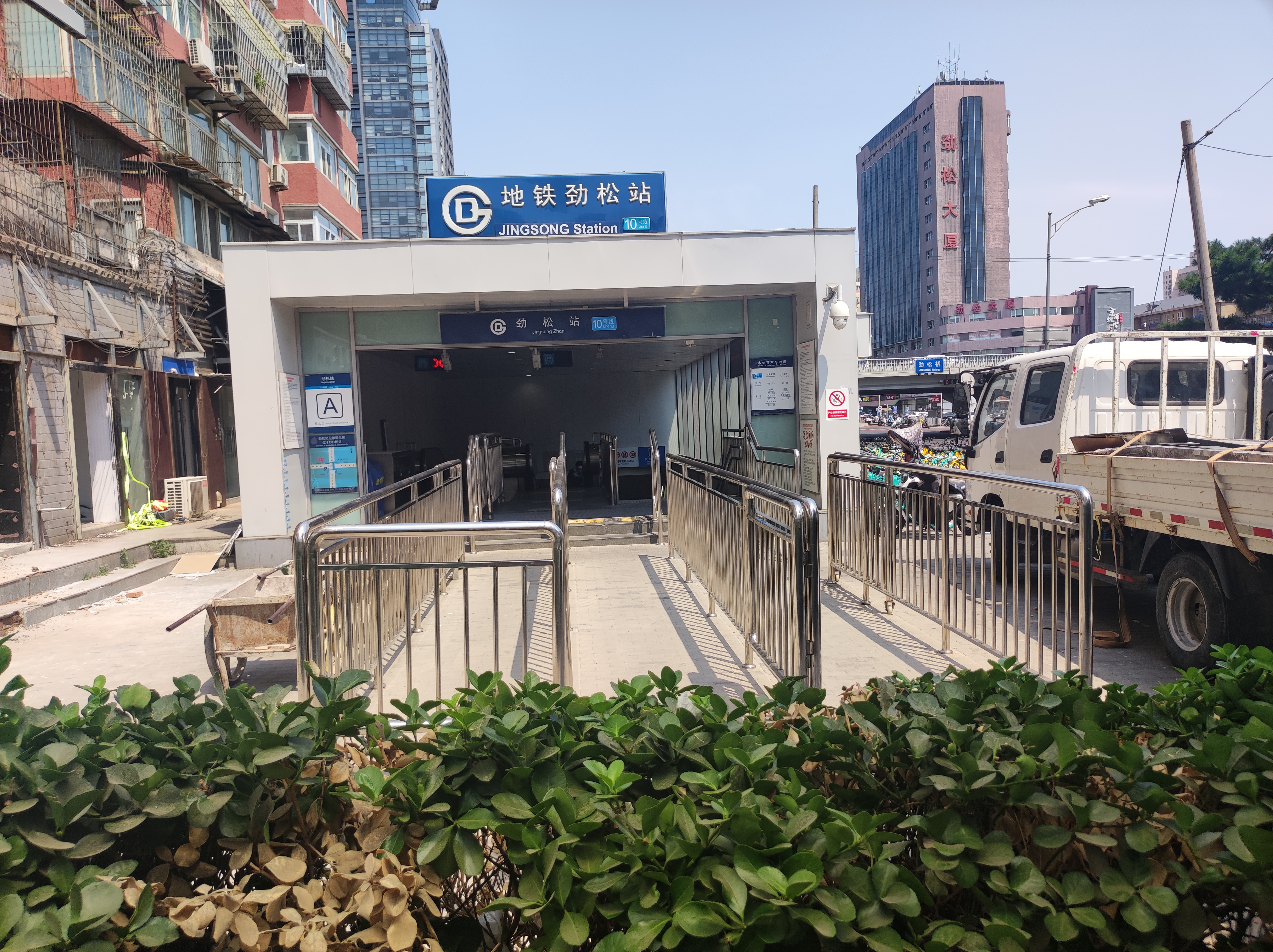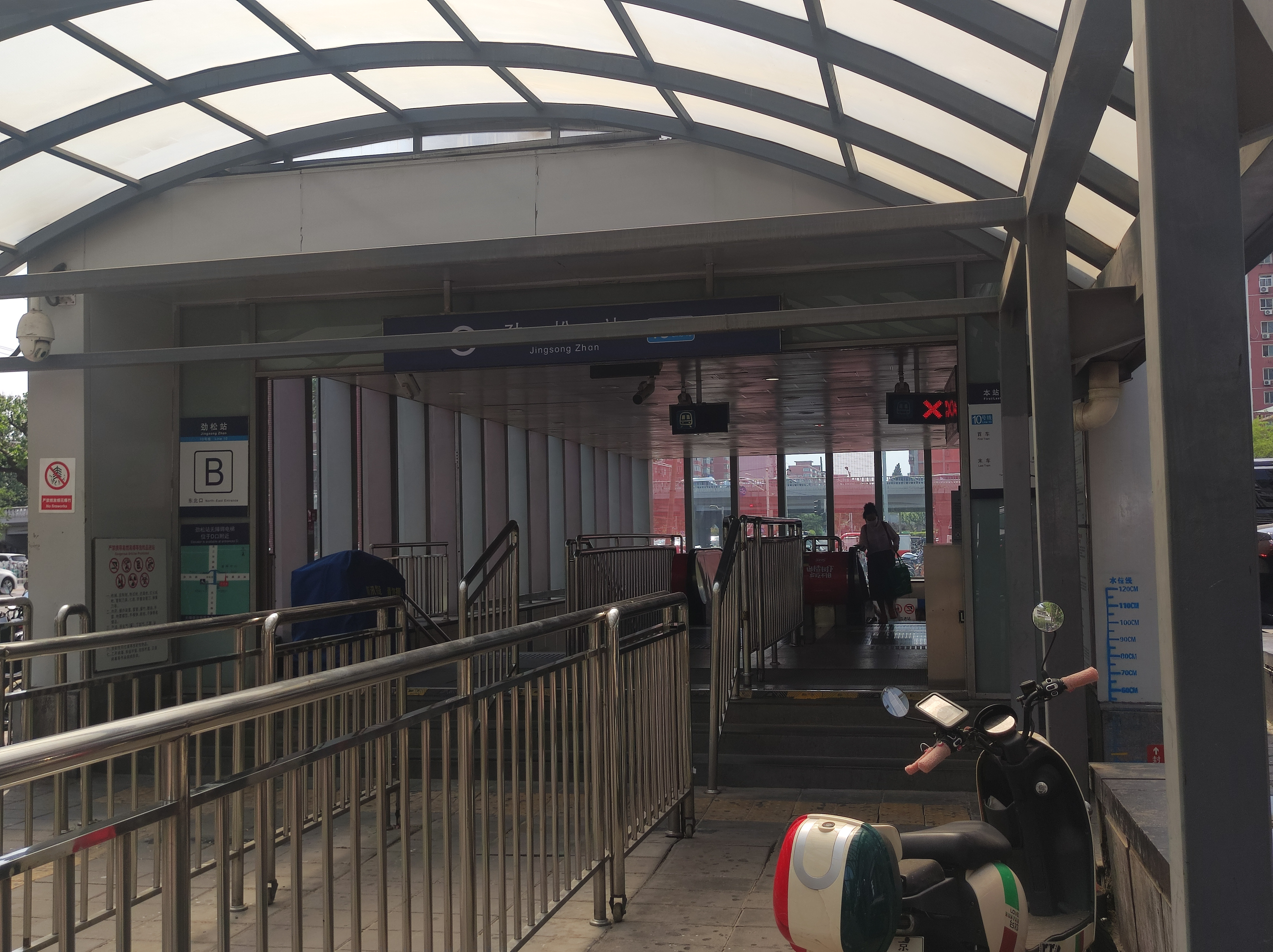 출구 지시 출구 인근 사진 무장애 시설 A 진쑹로(劲松路), 동3환남로(东三环南路) 진쑹 1구(劲松一区) B 동3환남로(东三环南路), 난모팡로(南磨房路) 푸둔센터, 화텅위안, 순마이진좐 빌딩 C 동3환남로(东三环南路), 눙광로 눙광리, 사반좡, 진쑹 빌딩 D 동3환남로(东三环南路), 진쑹 3구(劲松三区) 화텅 빌딩(华腾大厦), 하이웬 빌딩(海文大厦)