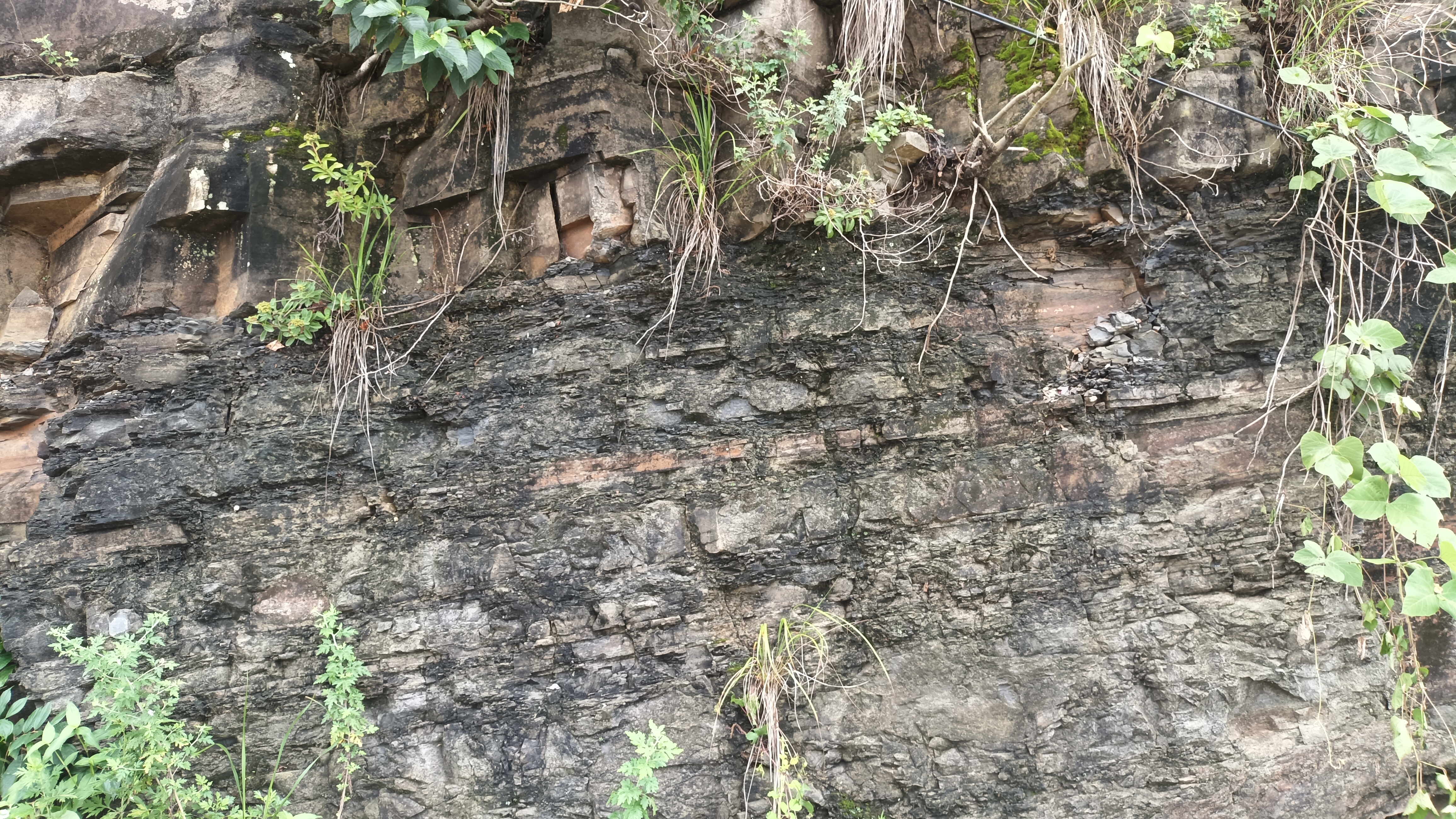 - 진주층 중부의 노두는 남해고속도로 사천 나들목 서쪽 0.5km 지역의 절개지에 발달한다. 이 노두는 두꺼운 (암)회색 이암과 얇은 사암이 교호한다.