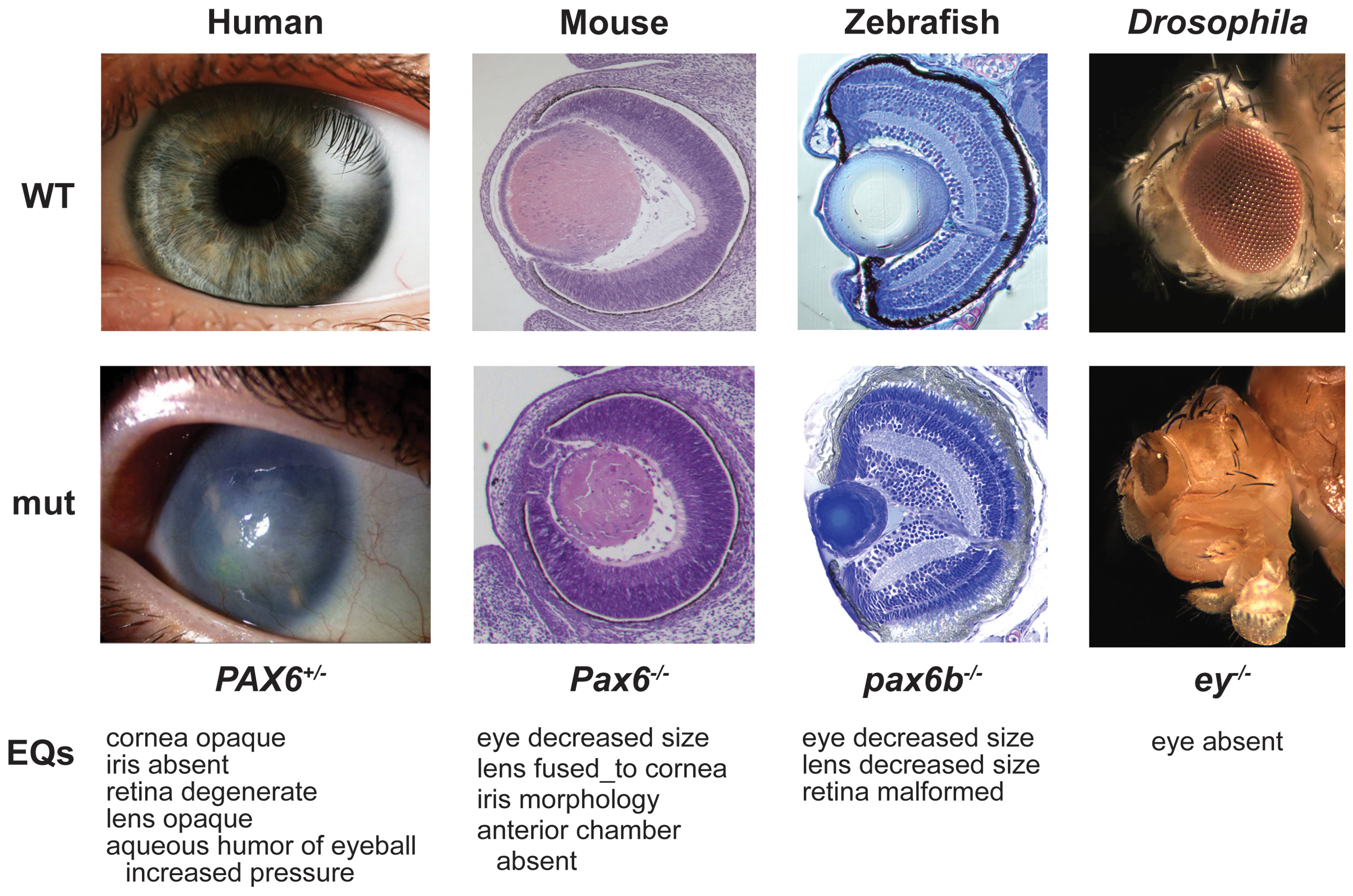 초파리와 사람처럼 확연하게 다른 신체 구조를 형성하는 유전자의 서열이 그토록 비슷할 수 있는 이유는 무엇일까? 초기의 과학자들은 초파리와 사람의 해부학적 구조 차이가 커서 초파리의 발생학적 과정 연구가 사람의 발생학적 과정의 연구에 도움이 되지 못할 것이라고 생각했다. 그러나 초파리의 눈을 형성하는데 관련하는 마스터 유전자인 '아이리스 유전자'와 대응되는 유전자 군이 다른 생물군에서도 발견되었고, 심지어 다른 생물군의 눈-형성 마스터 유전자를 초파리에 집어넣어도 정상적인 초파리의 눈이 형성되었다.[155] 또한 초파리의 말단부를 형성하는 유전자인 디스탈리스 유전자 또한 초파리와 유연관계가 적은 동물을 포함한 모든 동물의 몸에서 튀어나온 부속지들의 형성에 모두 관련됨을 보였다.[156]