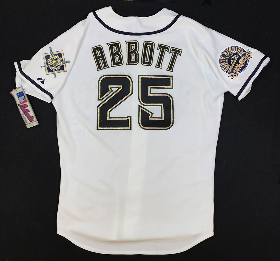 1999년 밀워키 브루어스 시절 짐 애벗의 홈 유니폼