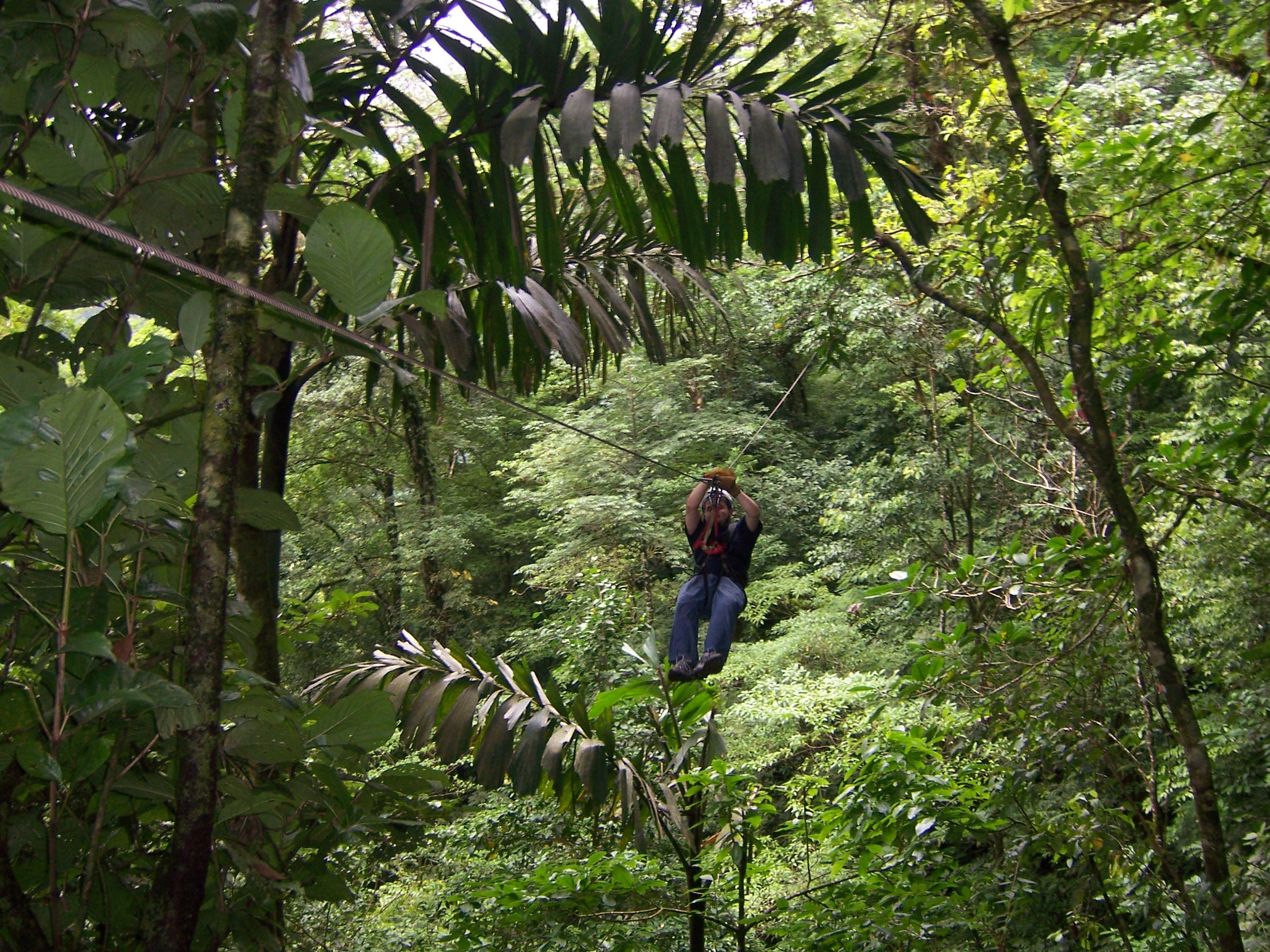 더 길고 높은 라이드는 종종 열대 우림 수관과 같이 접근하기 어려운 지역에 접근하는 수단으로 사용된다. 1970년대에 야생 생물학자들은 환경을 훼손하지 않고 코스타리카의 울창한 열대 우림을 연구하고 탐험하는 방법으로 집라인을 설치했다. 이러한 아이디어에서 집라인 캐노피 투어에 대한 사업 아이디어가 발전했다. 1992년 코스타리카로 이주한 캐나다 시민 대런 흐레니우크는 영화 ''메디신 맨''의 한 장면에서 나무 꼭대기 타기를 통합하여 주변 지역의 재조림, 교육 및 사회 경제적 발전을 위한 인식을 높이는 데 캐노피 투어를 활용하려는 목표를 가지고 있었다.[5] 1998년 10월, 코스타리카 특허청은 흐레니우크에게 "단순한 수평선을 통해 하네스와 도르래를 사용하여 중력으로 추진되는 고가 숲 운송 시스템"에 대한 특허 번호 2532를 부여했다. 이 특허는 나중에 무효가 되어 집라인 사업에 불확실성을 가져왔지만, 20년 후에 복원되었다.[20][21]