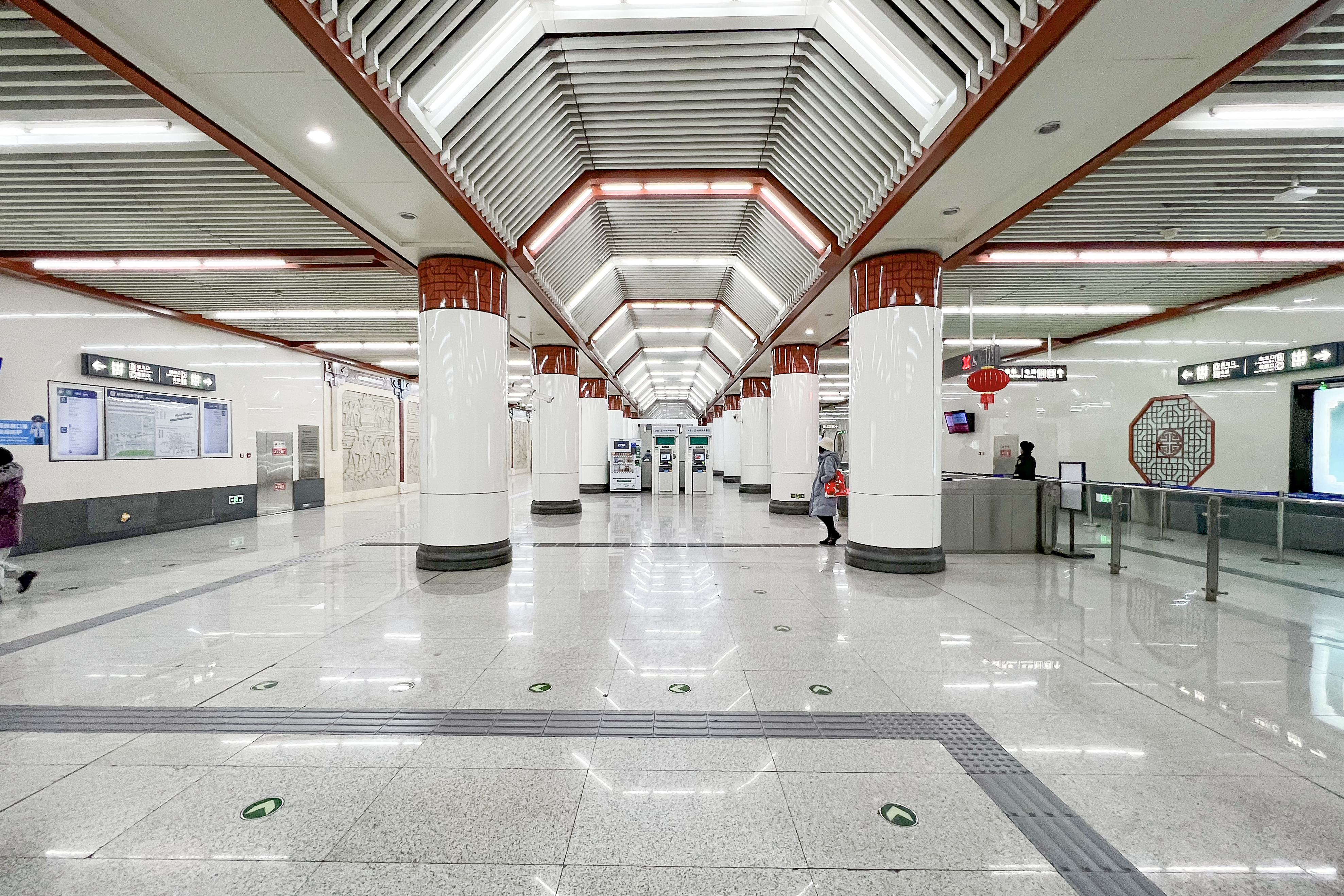 이 역은 2환로, 원래 베이징 외성 지역, 주스커우 동대가(량광로에 위치, 동서 방향)에 예정된 젱이로의 남쪽 연장로(남북 방향)의 교차점에 있으며 동서 방향으로 배치되어 있다.[3]