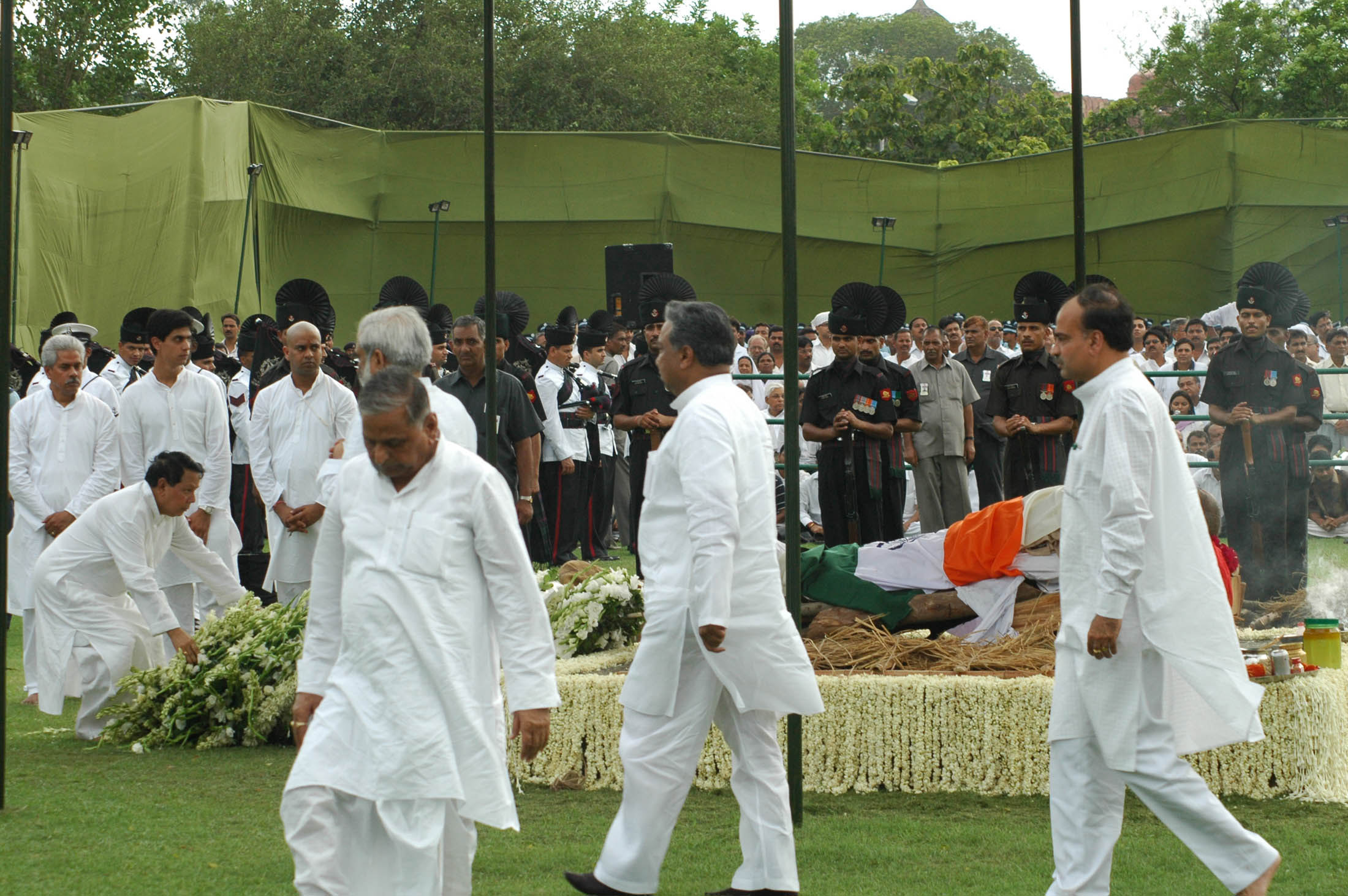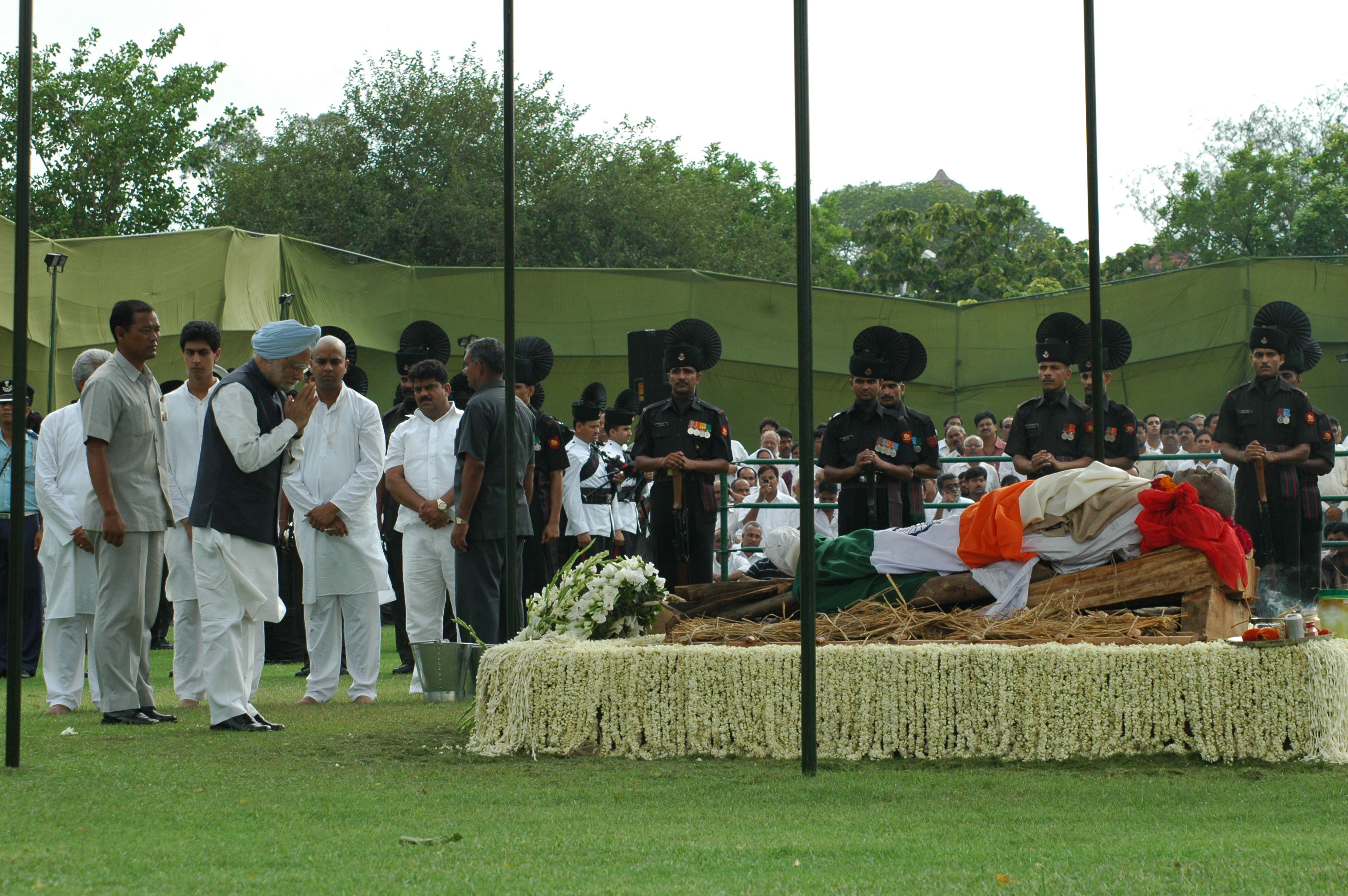인도 각 정당의 정치인들이 그에게 조의를 표했으며[57], 인도 정부는 7일간의 국가 애도 기간을 선포했다.[56] 그는 2007년 7월 10일 야무나 강둑에 있는 '''자나야크 스탈'''에서[58] 전통적인 장작더미 위에서 국가적인 예우를 갖춰 화장되었다.[59] 2007년 8월에는 그의 유해가 시루바니 강에 뿌려졌다.[60]
