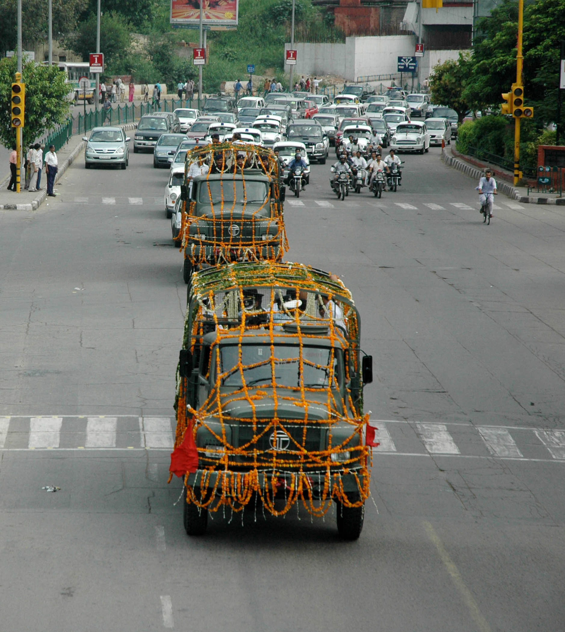 2007년 7월 9일 델리에서 국장 장례식을 위해 찬드라 셰카르의 시신을 실은 마차가 엑타 스탈로 향하고 있다