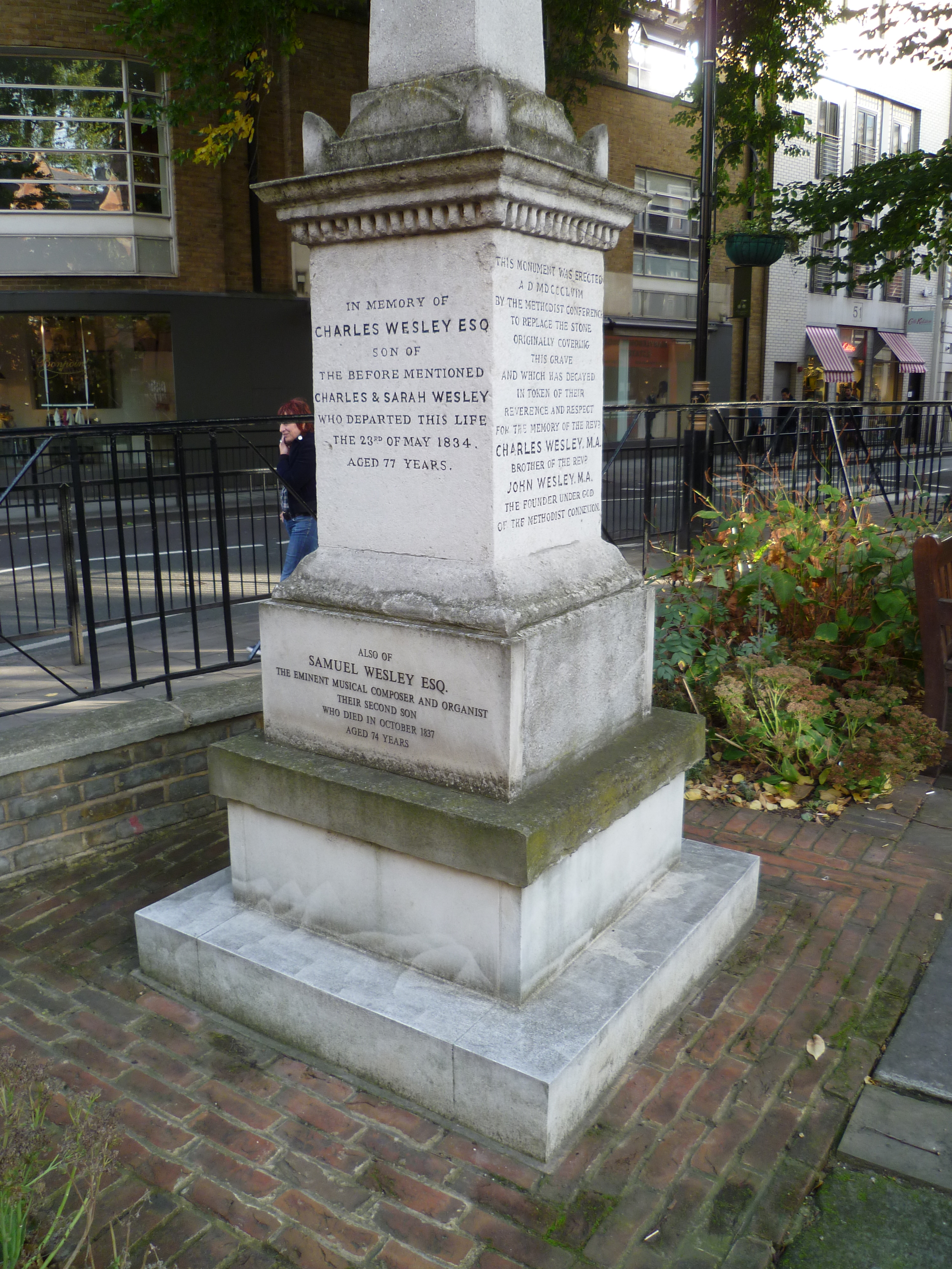 찰스 웨슬리는 1788년 3월 29일 런던에서 사망했다.[16] 임종 시 그는 세인트 메리르본 교구 교회의 교구 사제인 존 할리에게 "잉글랜드 교회 신도로 죽습니다. 당신의 교회 묘지에 저를 묻어주세요."라고 말했다고 한다.[16] 그의 시신은 잉글랜드 교회 소속 사제 6명에 의해 교회로 운구되었으며, 기념비는 묘지 근처의 메리르본 하이 스트리트 정원에 세워져 있다.[17] 그의 아들 중 한 명인 사무엘은 이 교회의 오르가니스트가 되었다.[17]