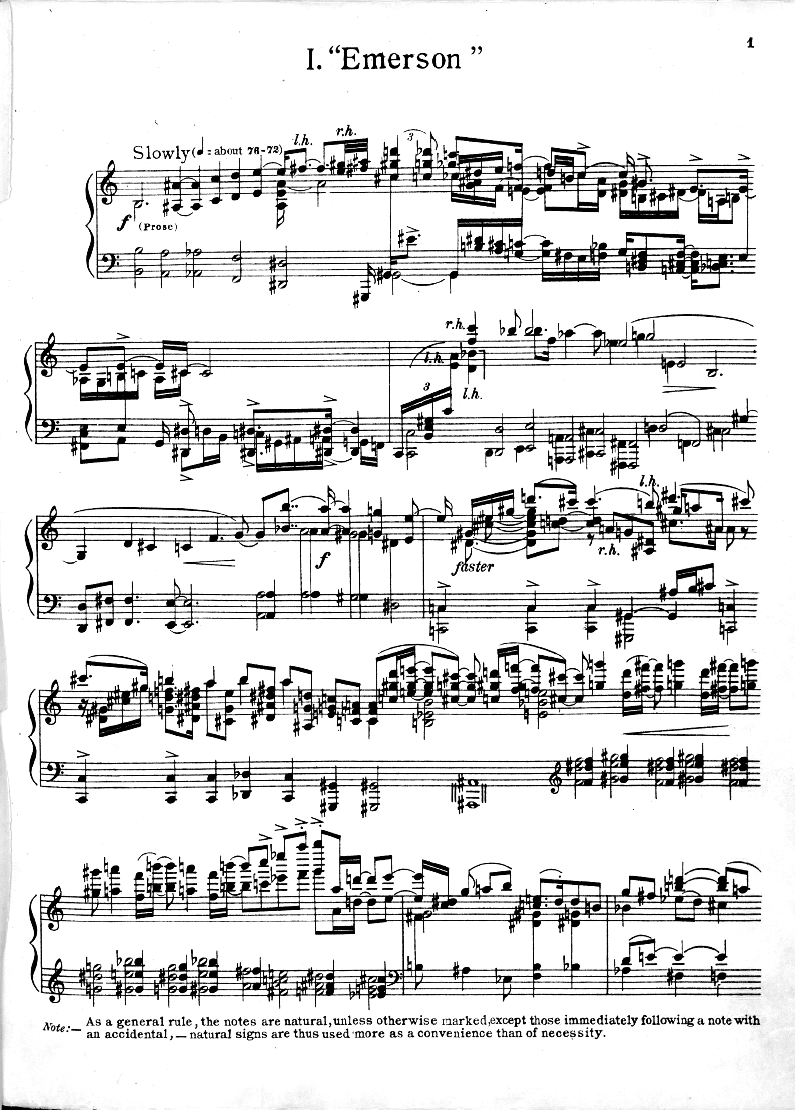 대표적인 작품으로는 4개의 조에 의한 푸가 "빛나는 기슭", 에머슨 서곡(1907년) 등이 있다.